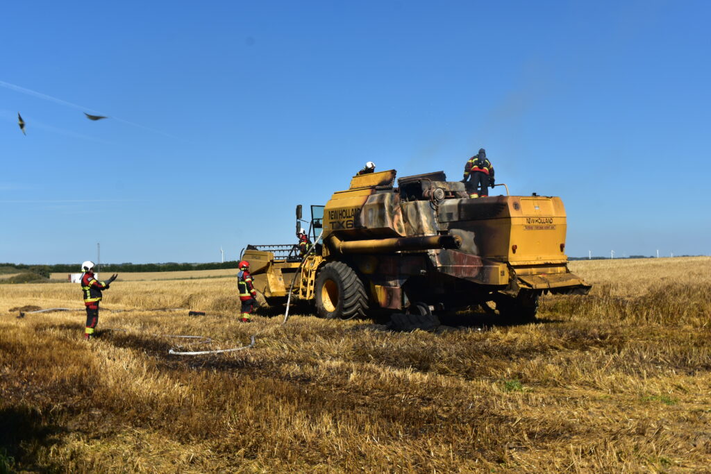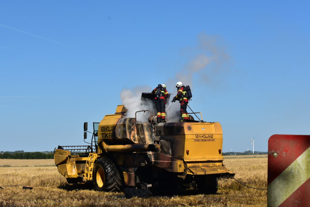 Branden opstod under høstningsarbejde.