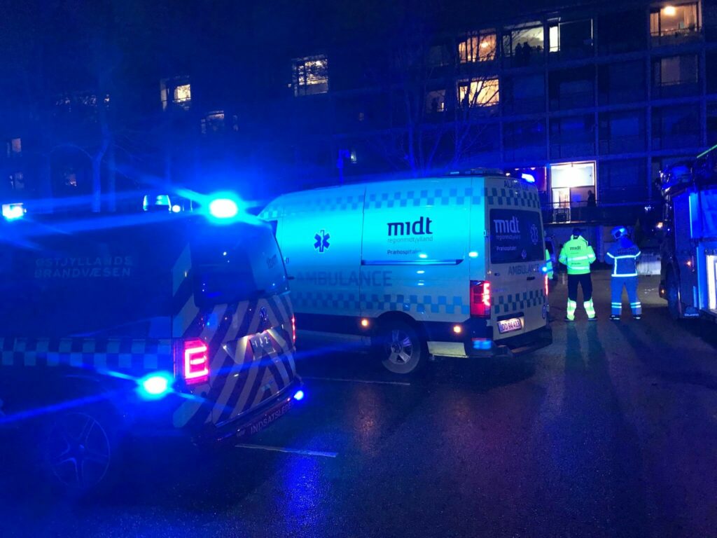 Østjyllands Brandvæsen oplyser til presse-fotos.dk, at der er tale om, at der har været røgudvikling fra et komfur i lejligheden, men at der ikke har været brand.