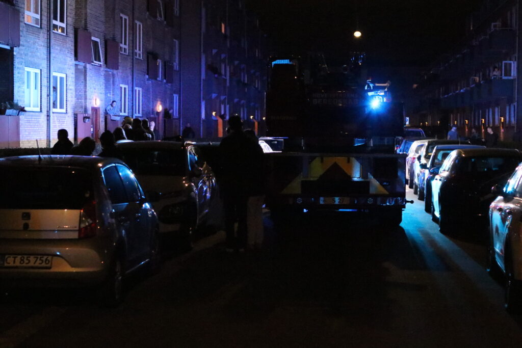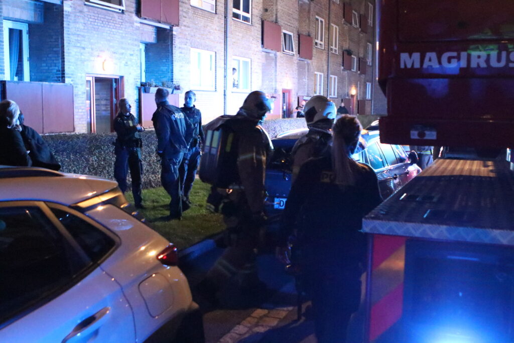 Mandag aften er brandvæsnet til stede på Flakholmen efter en melding om brand i en lejlighed. Det viste sig at være tale om en glødbrand i kabelbakke.