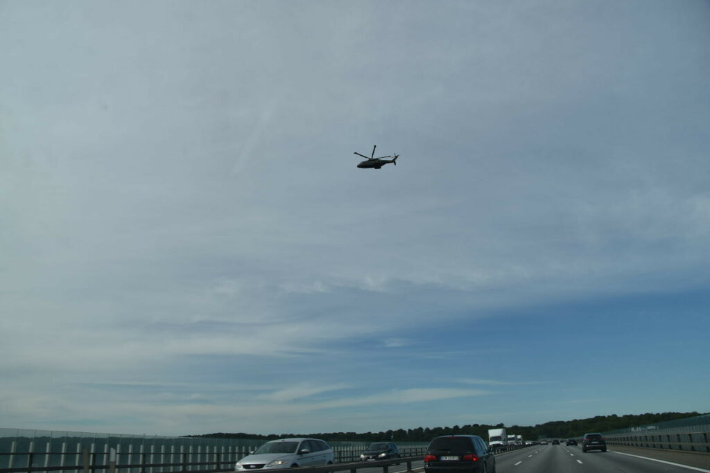 En af forsvarets redningshelikoptere er også på stedet hvor eftersøgningen på havet er i gang.