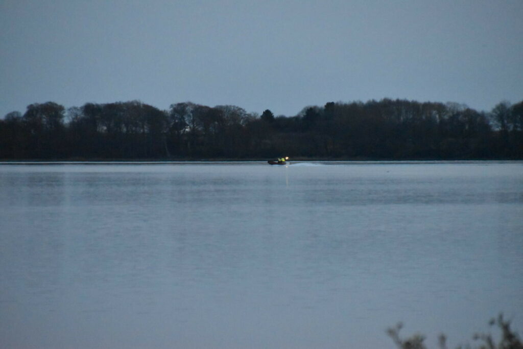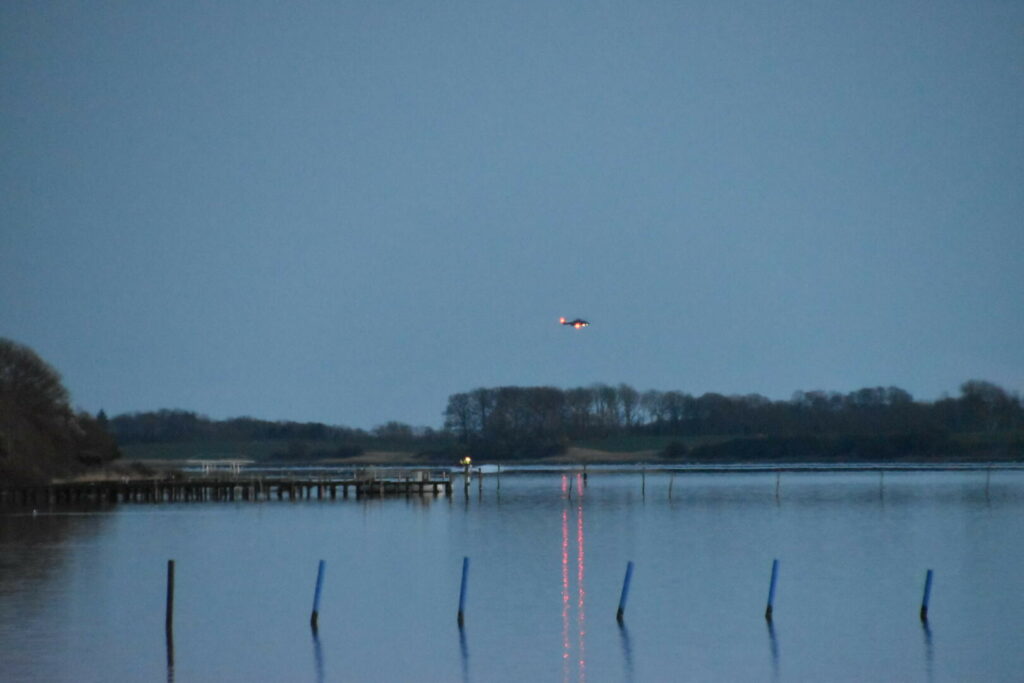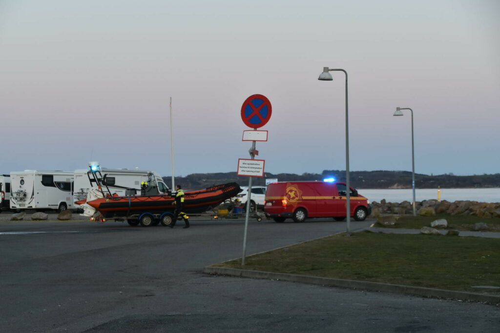 Brandvæsenet har sat en båd i vandet ved Fredericia og leder lige nu langs kysten, sammen med redningshelikopteren.