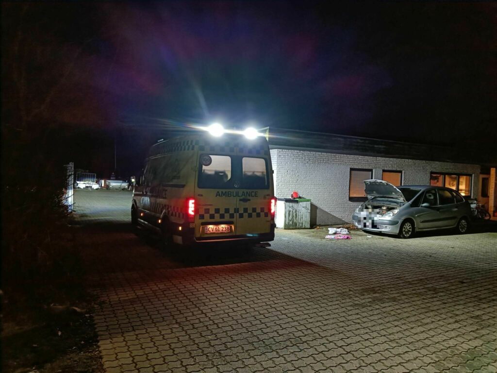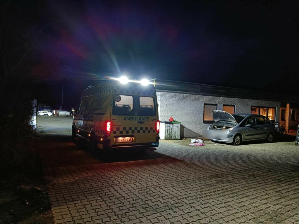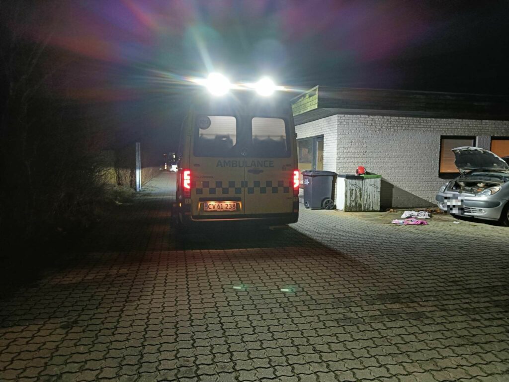Brandvæsnet har nu forladt stedet, men ambulanceredderne er fortsat på adressen. Det er endnu uvist, hor slemt personen er kommet til skade i forbindelse med uheldet.
