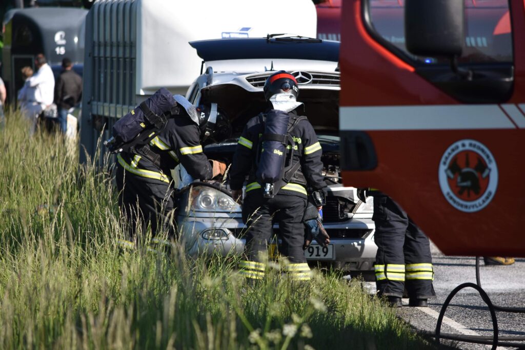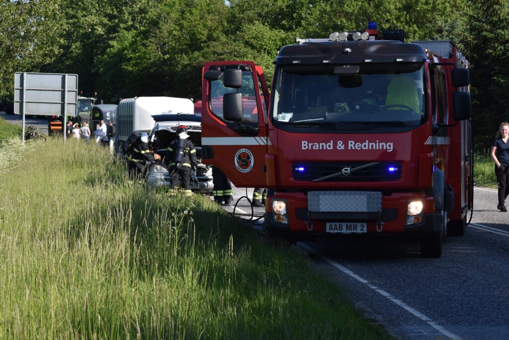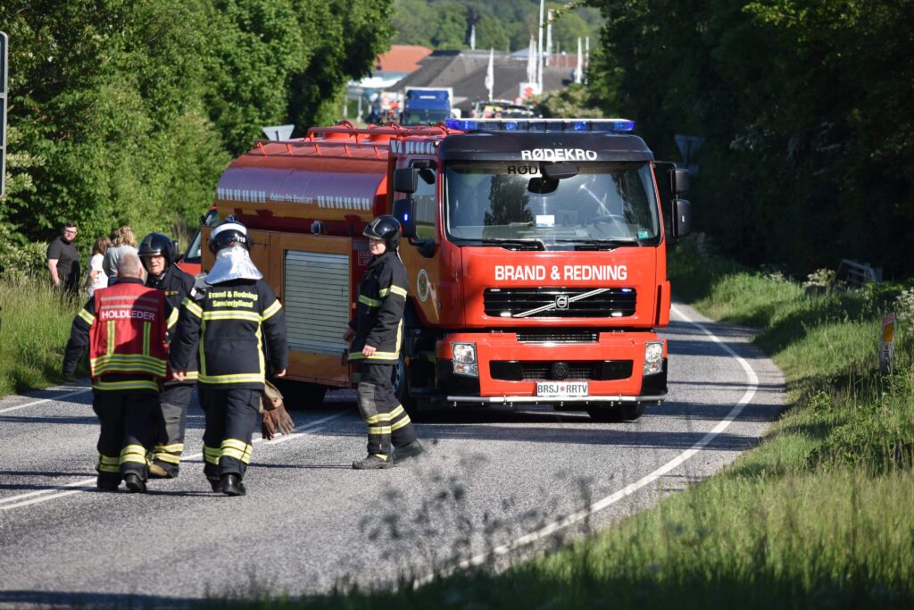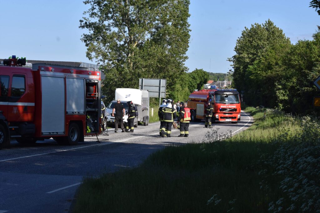 En bil står lige nu i flammer på rute 24 i Rødekro i Sønderjylland. Politi og brandvæsen er på stedet og vejen er spærret under rednings og slukningsarbejdet.