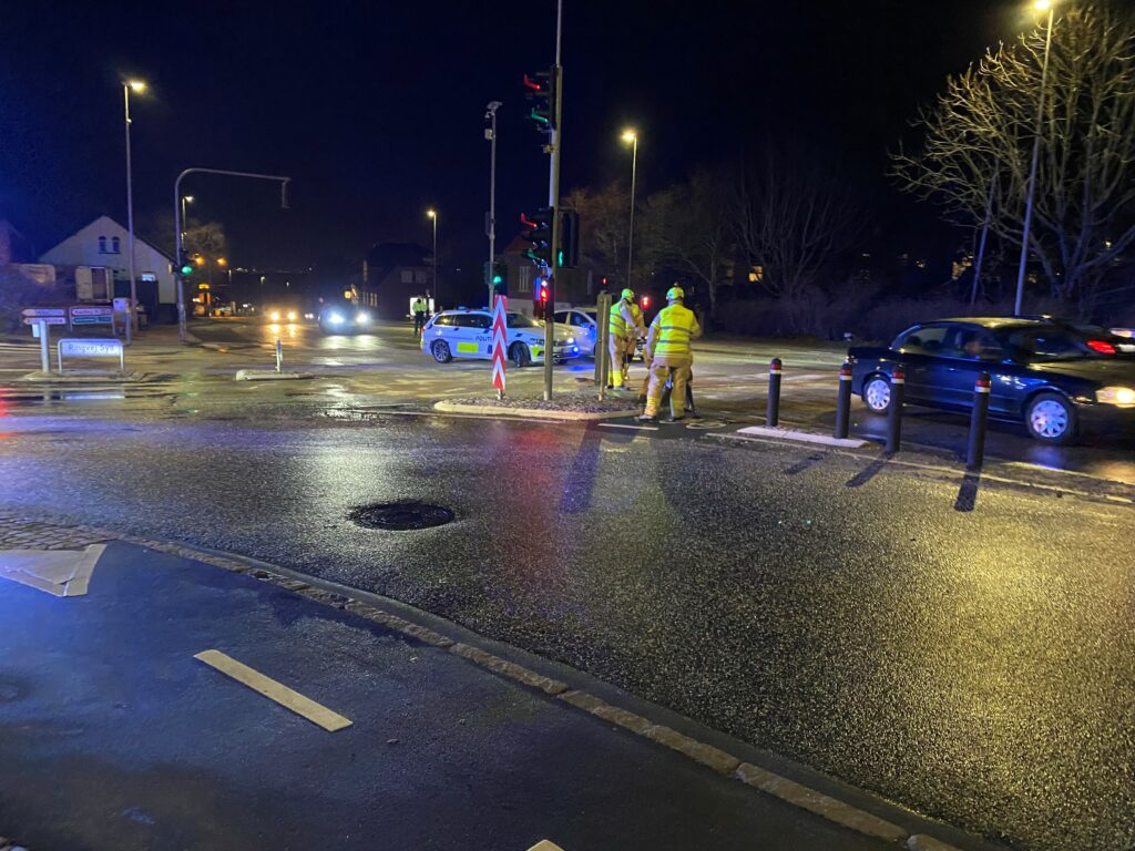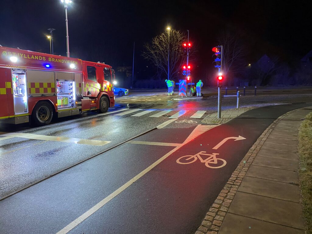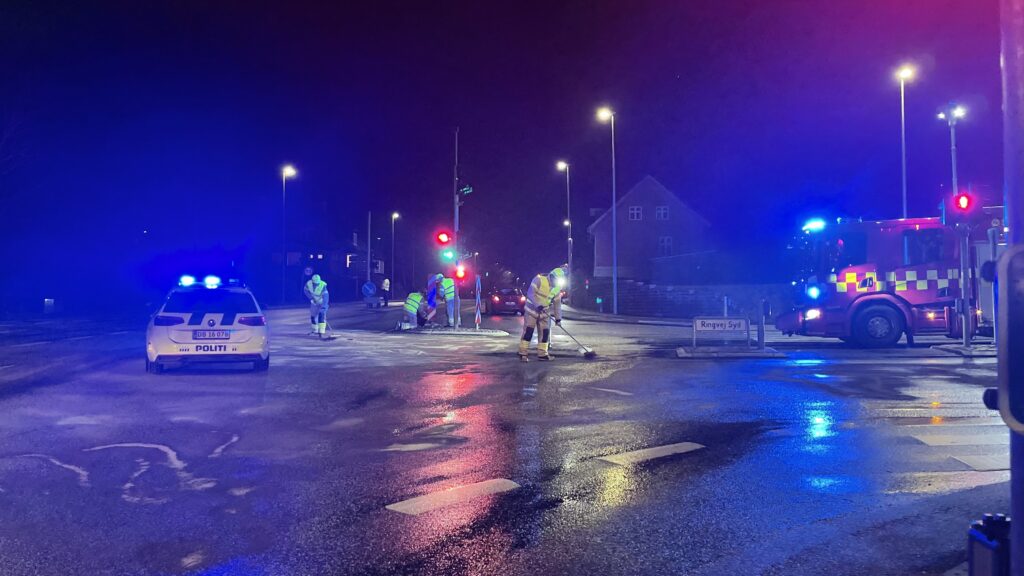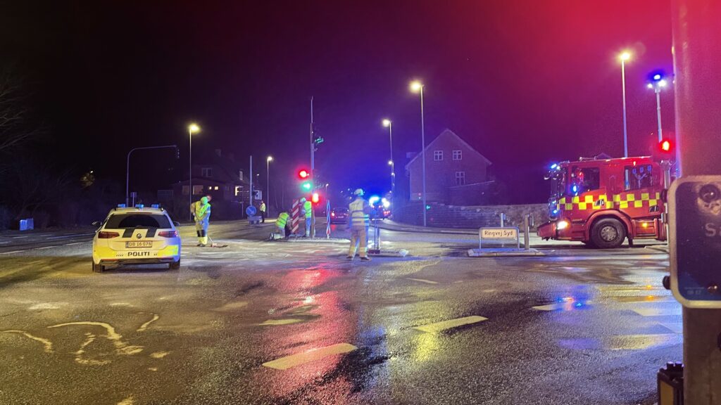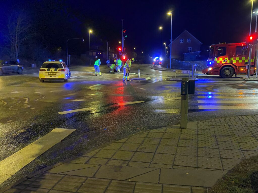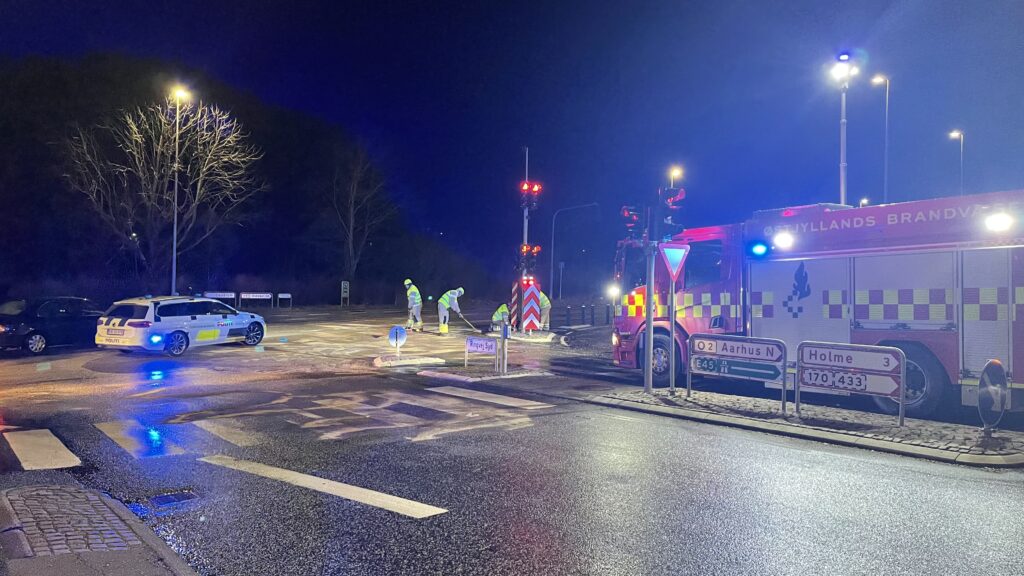 Politiet og Østjyllands Brandvæsen er torsdag aften til stede i krydset ved Oddervej og Ringvej Syd efter et færdselsuheld har efterladt mindre forurening på vejbanen.