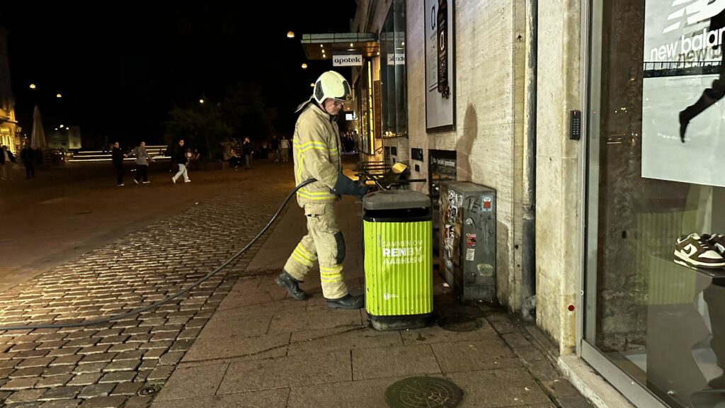 En mindre skraldespandsbrand er natten til lørdag opstået på Store torv i Aarhus.