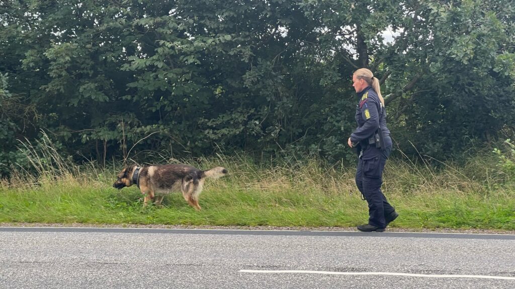 ‘På Åbenråvej i Tønder omkring Emmerske efterskole er vi pt. til stede i forbindelse med undersøgelse af et mistænkeligt forhold. Åbenråvej vil være afspæret i forbindelse med vores undersøgelser hvorfor alternative veje anbefales. /Vagtchefen #politidk’