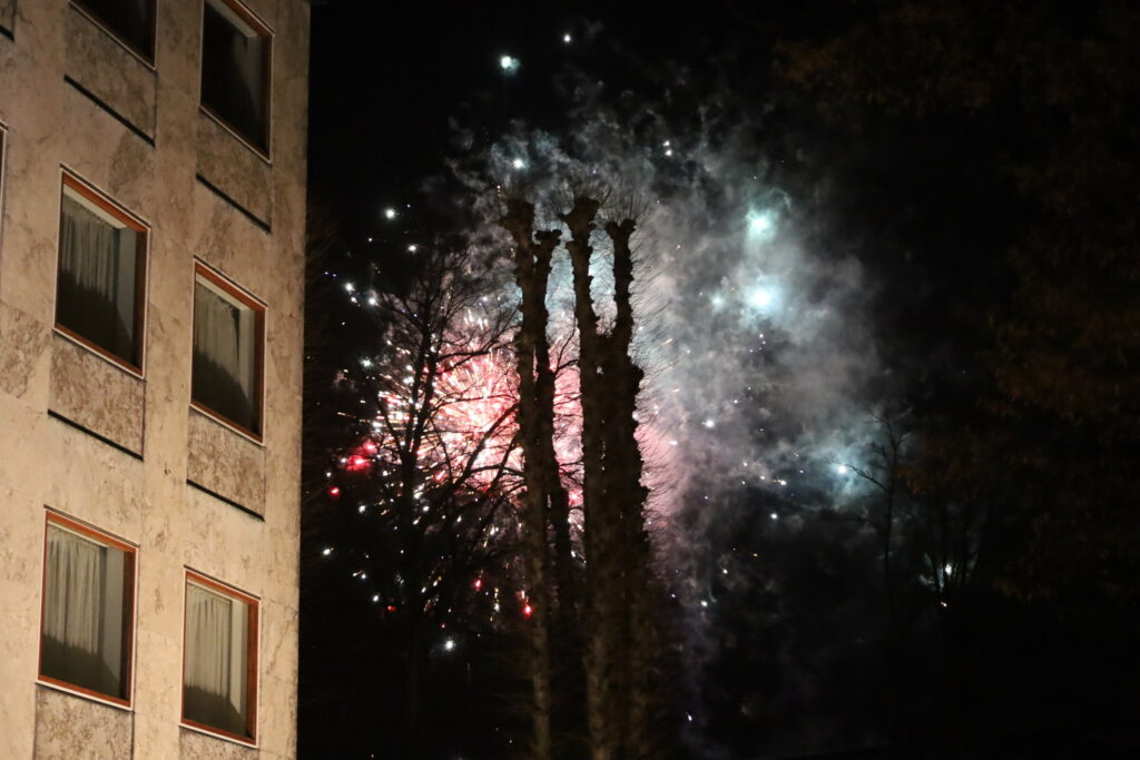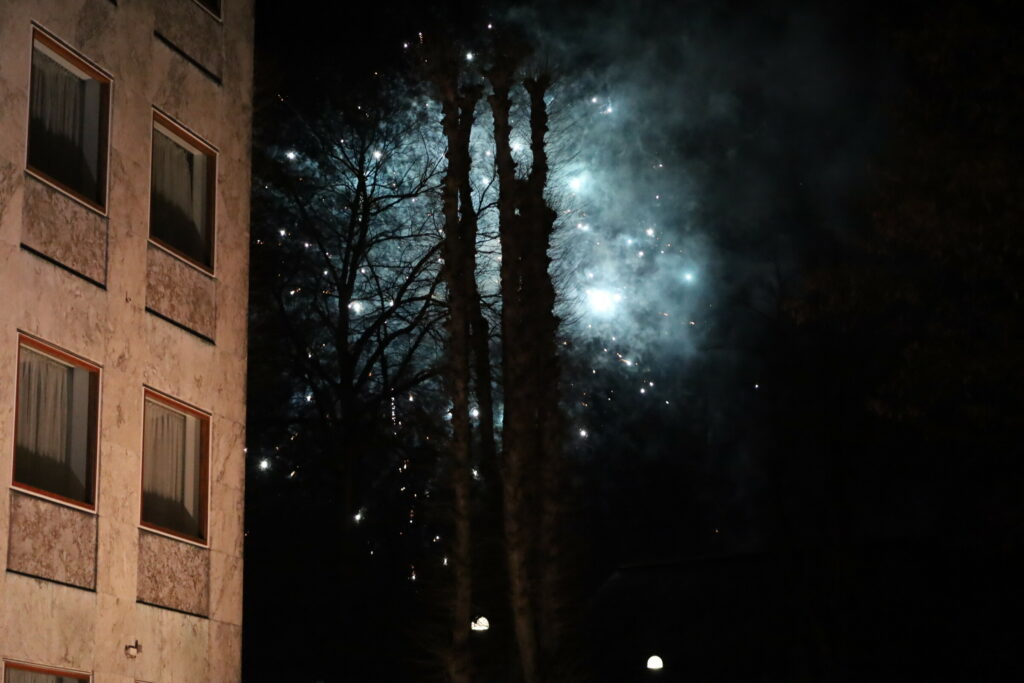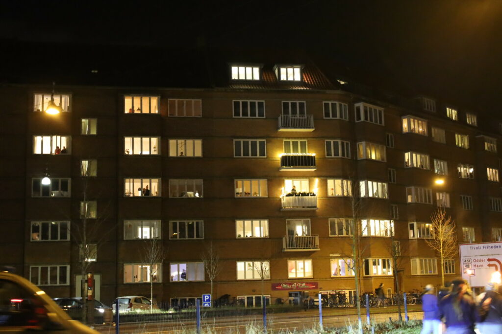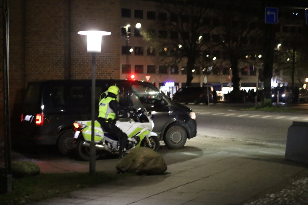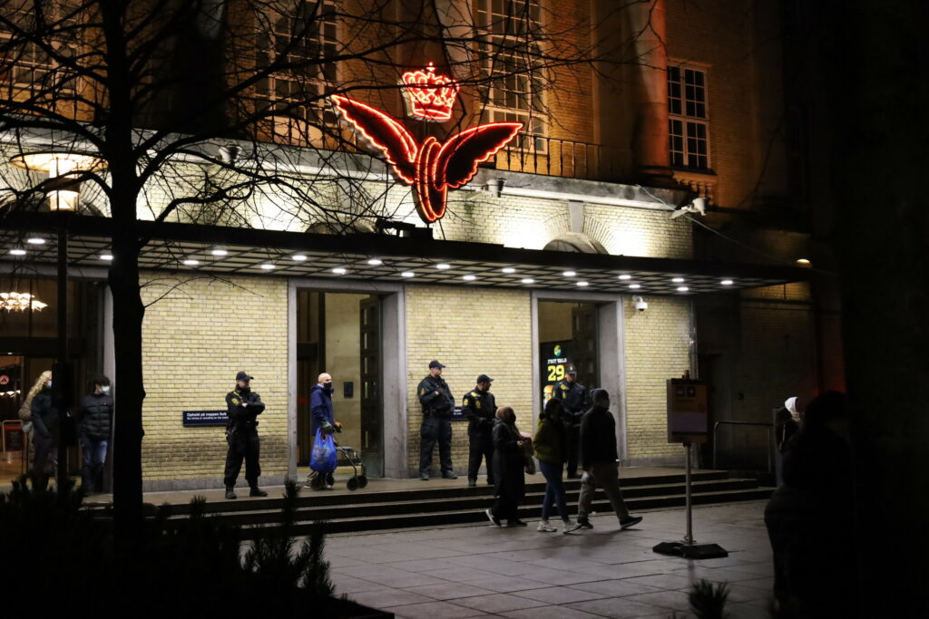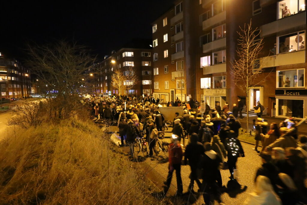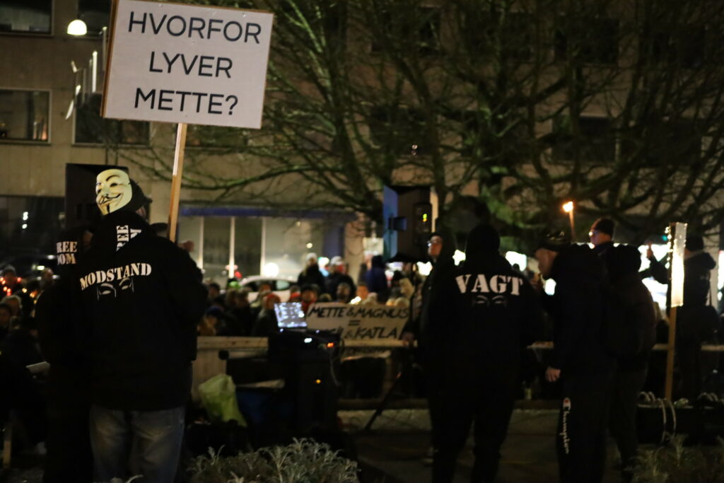 Flere 100 er mødt op med bannere fyrværkeri og opråb som blandt andet “frihed for Danmark – vi har fået nok”.