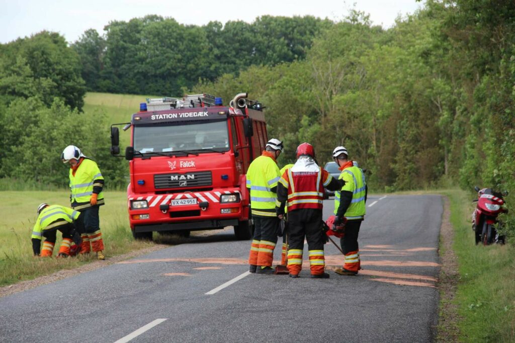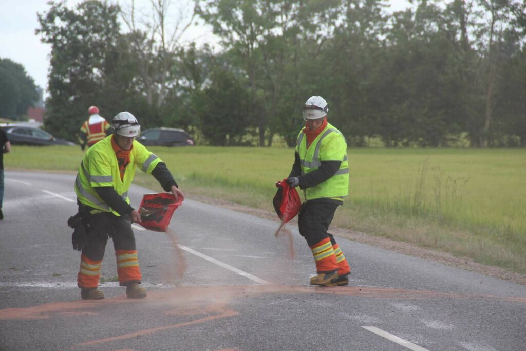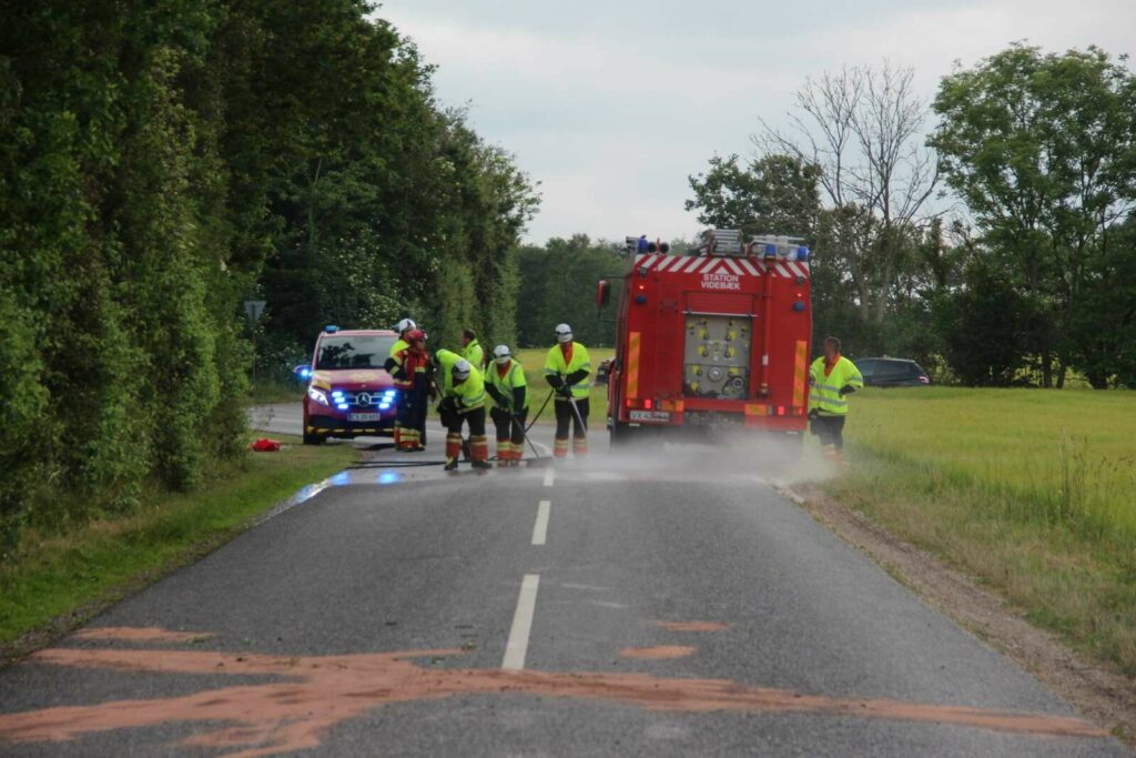 Brandvæsenet foretog oprydning på stedet, da der i forbindelse med uheldet var sket et oliespild.