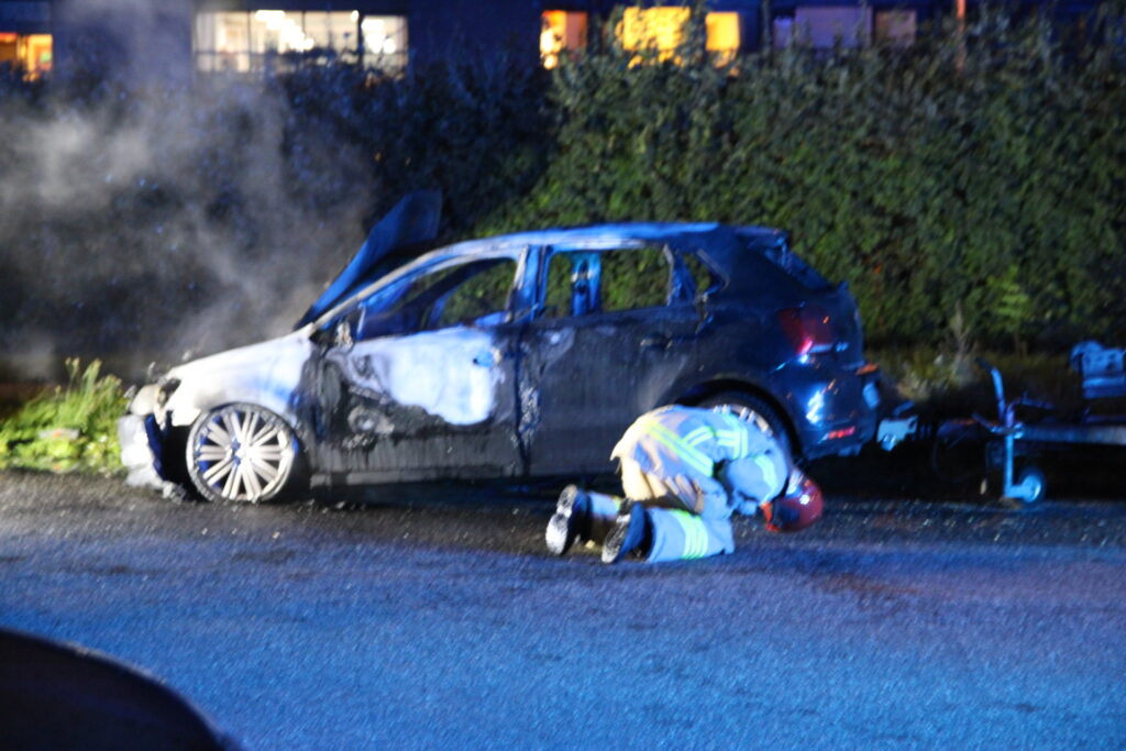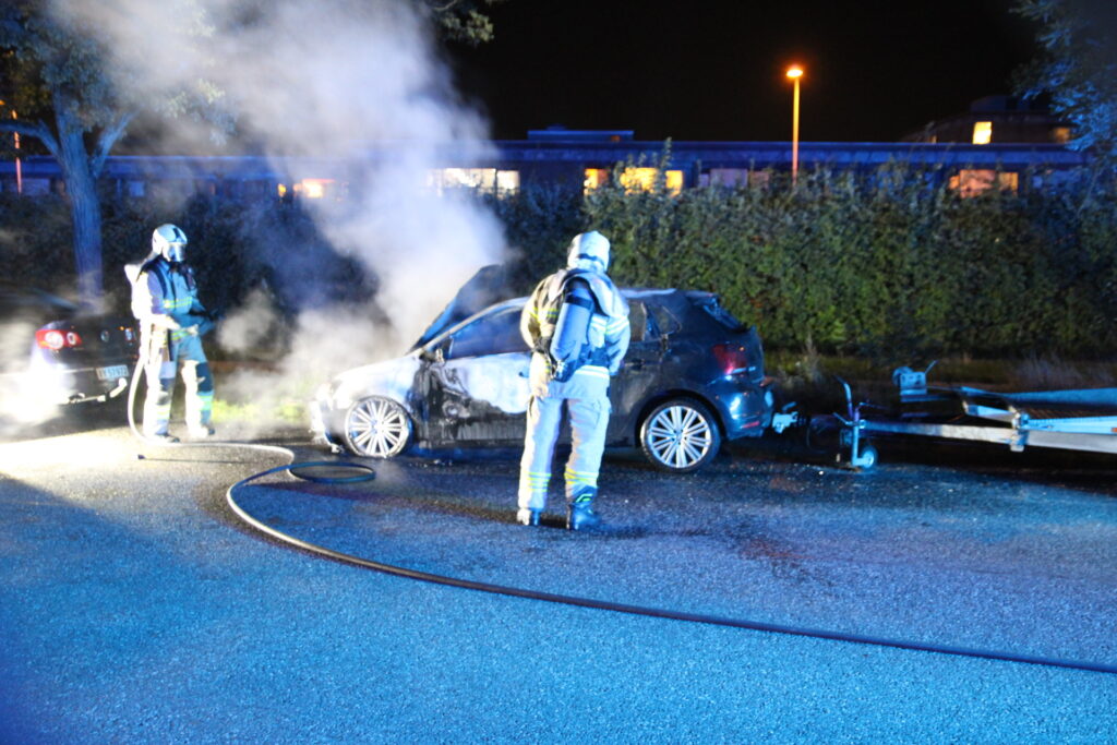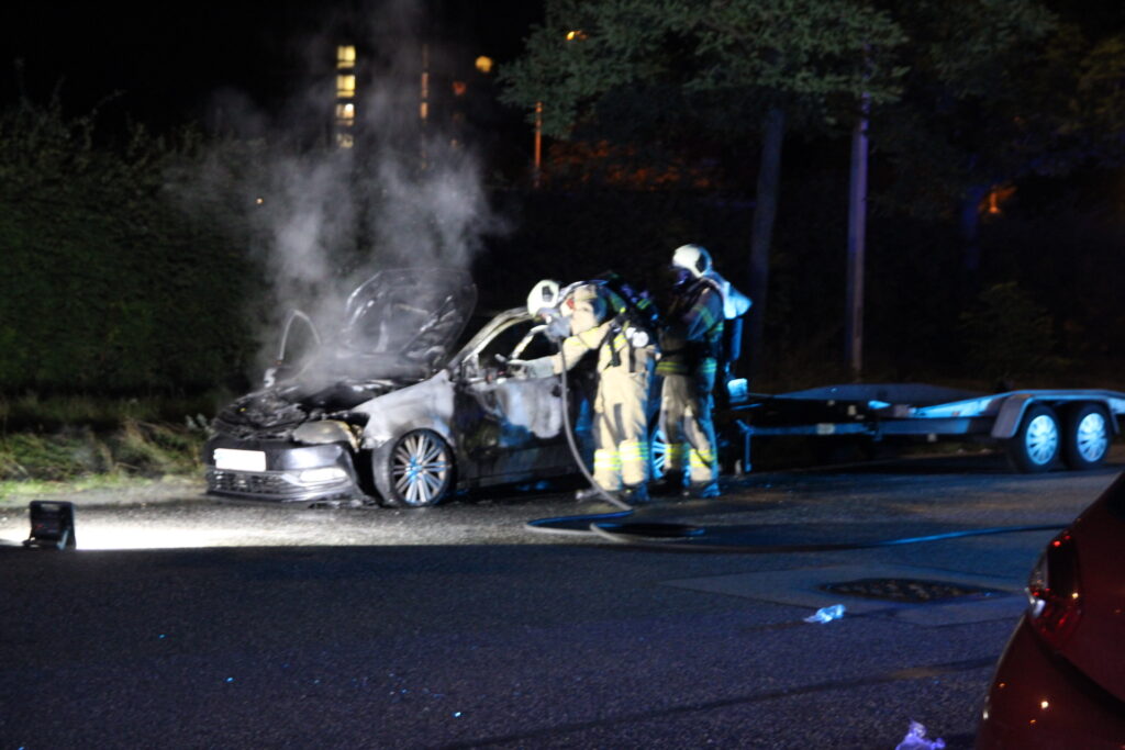 Flere vidner har natten til mandag set flere gerningsmænd løbe fra stedet hvor en bilbrand lige nu finder sted på Bystævneparken i København.