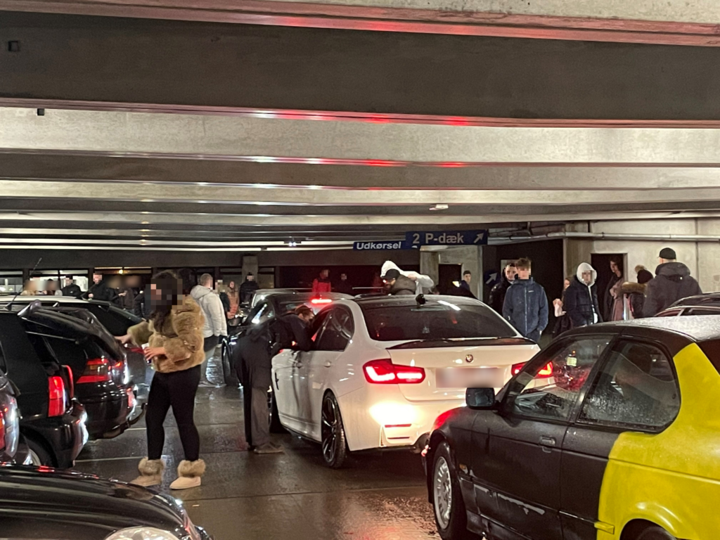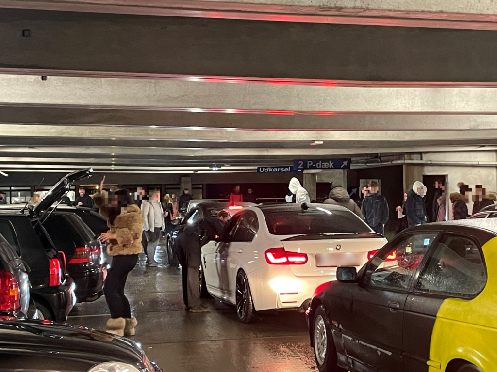 Mange biler er fredag aften samlet i et parkeringshus på Nygårds Plads i Brøndby Øster.