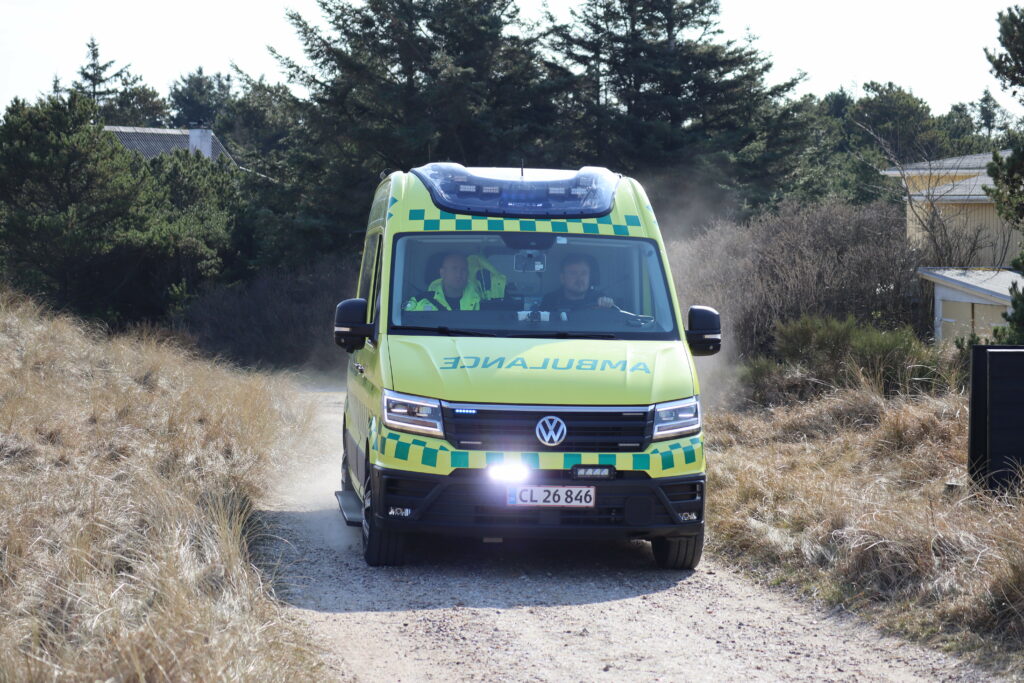 Politiet er ligeledes på stedet og snakker med de omkringliggende beboere i sommerhusene.