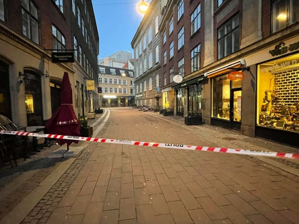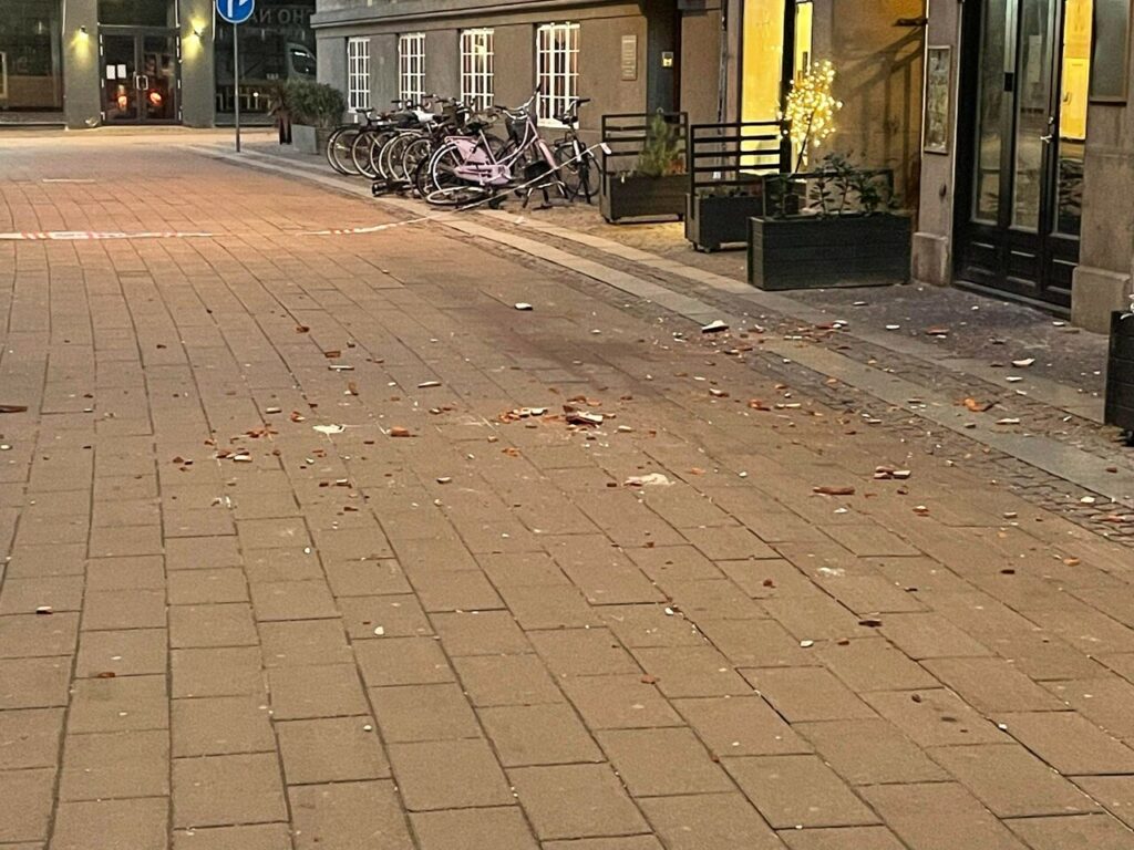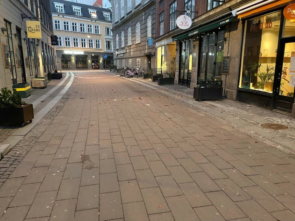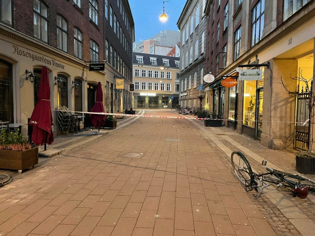 Politiet har søndag morgen afspærret et større område omkring Fiolstræde i København, hvor nedfaldne tagsten giver fare for forbipasserende.