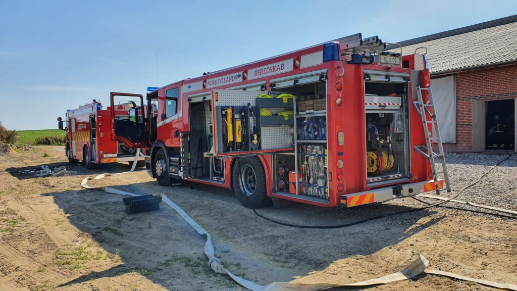 “Vi er stadig i gang med at slukke branden, og vi regner med at være der i nogle timer endnu”, oplyser Nordjyllands Beredskab.
