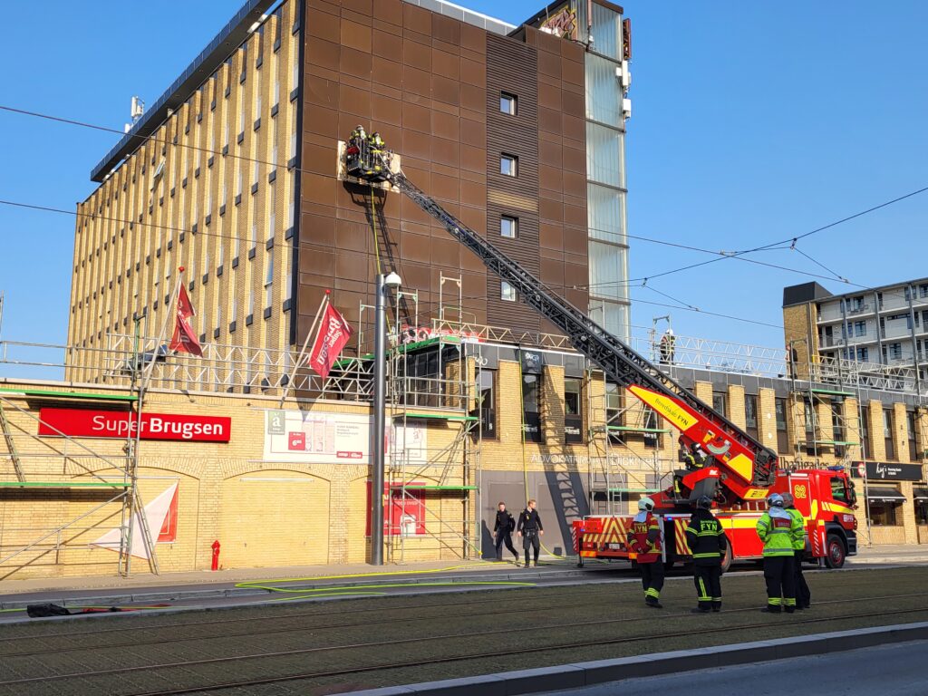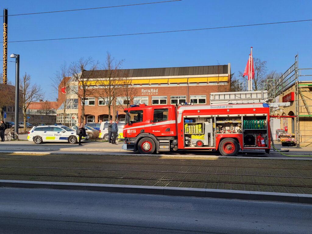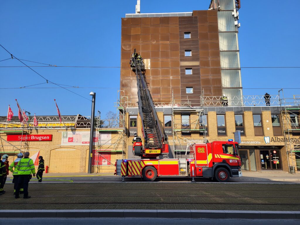 “Det er en Superbrugsen, som ligger op af en etageejendom, hvor de er ved at lægge noget tagpap på. Og det har så været inde og få fat på noget inddækning, der har skabt røgudvikling i etageejendommen,” oplyser vagtchefen Henrik Krøjgård fra Fyns Politi.