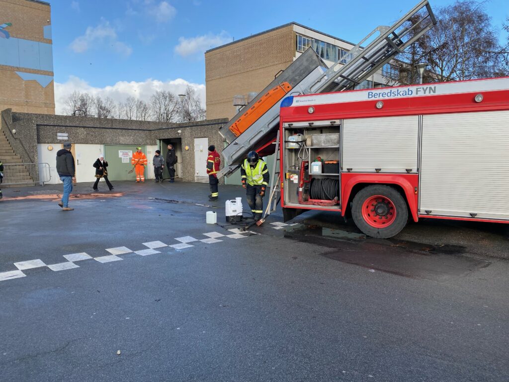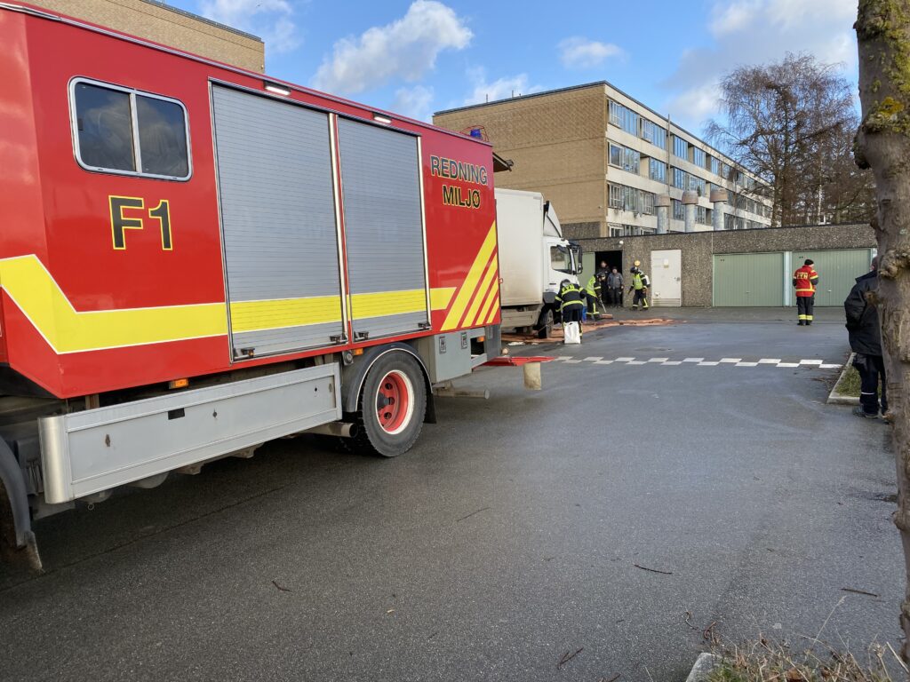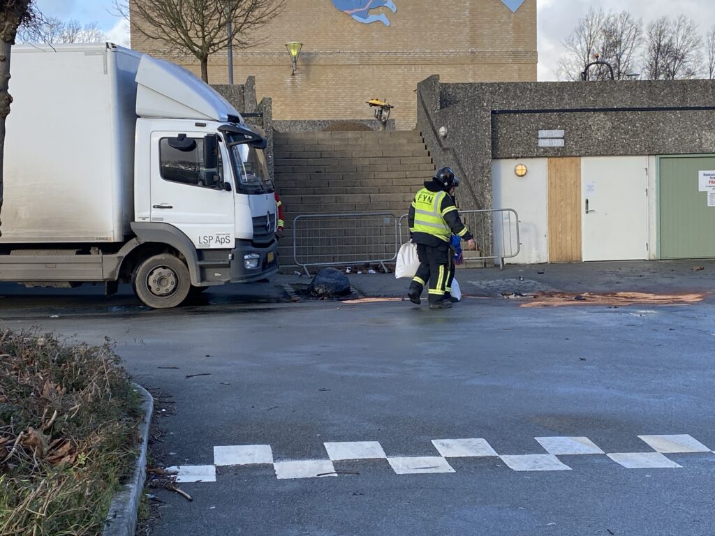 En lastbil har torsdag eftermiddag påkørt en sten i Lærkeparken i Odense.