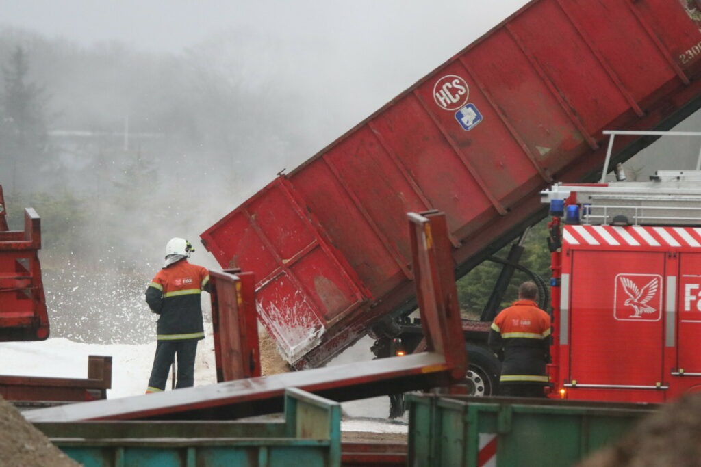 Brandvæsnet fra Assens var fremme for at slukke branden med skum, så den ikke starter op igen.