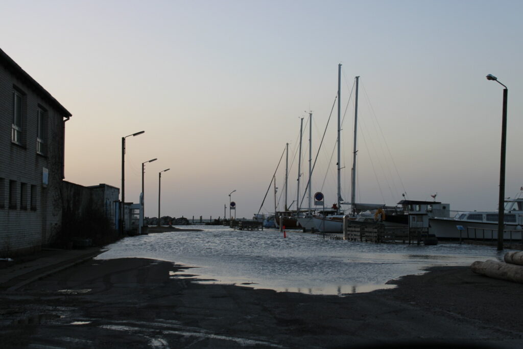 Vandet ligger lige nu hen over vejen, så vær opmærksomme når i færdes i området.
