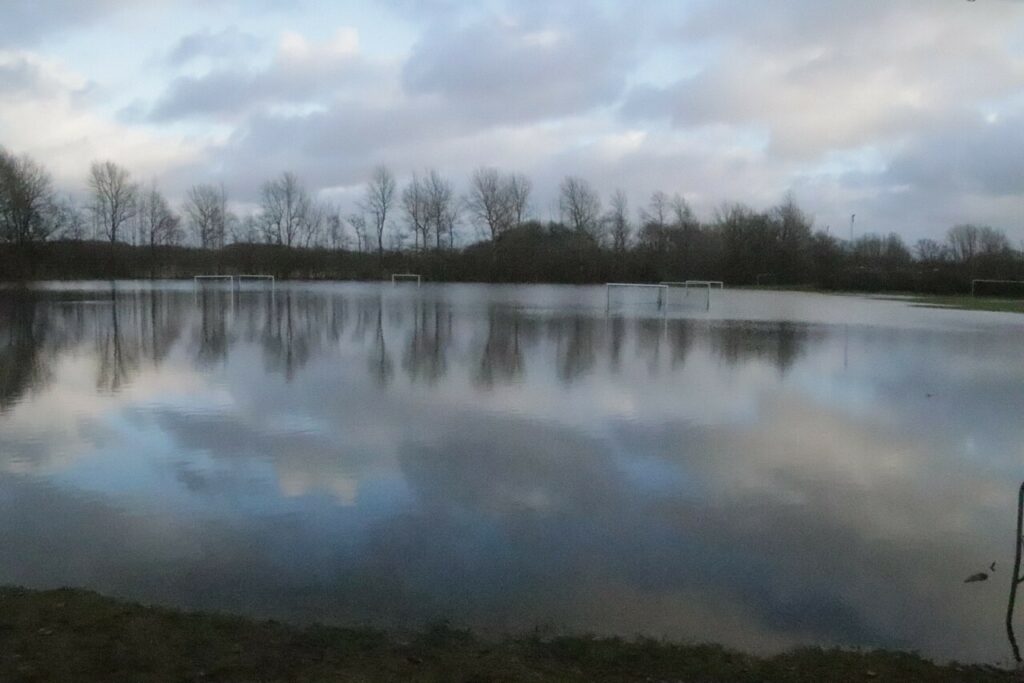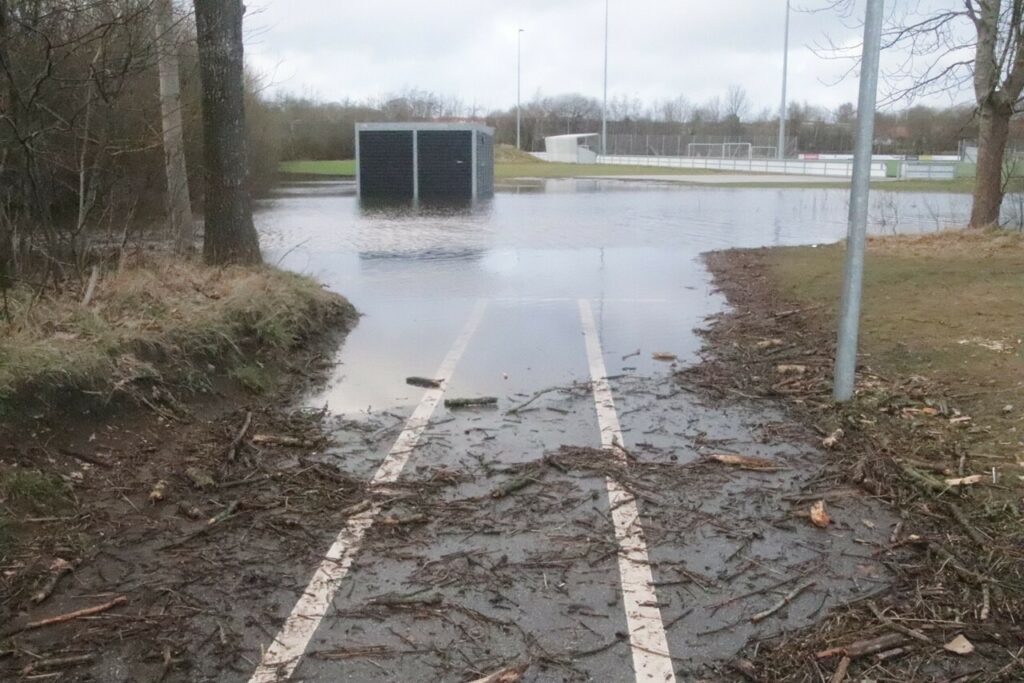 Banerne ved Hammerumhallen og Lindbjergskolen i Hammerum nær Herning mindede mandag eftermiddag mere om vandpolobaner end om fodboldbaner.