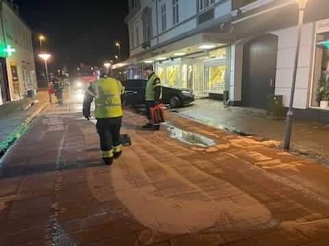 En bil har fredag eftermiddag smidt olie/diesel efter at have ramt en pullert på Nørregade i Frederiksværk. Pullerten sikre at man ikke kan køre gennem Nørregade uden man er beboere eller har andet ærinde.