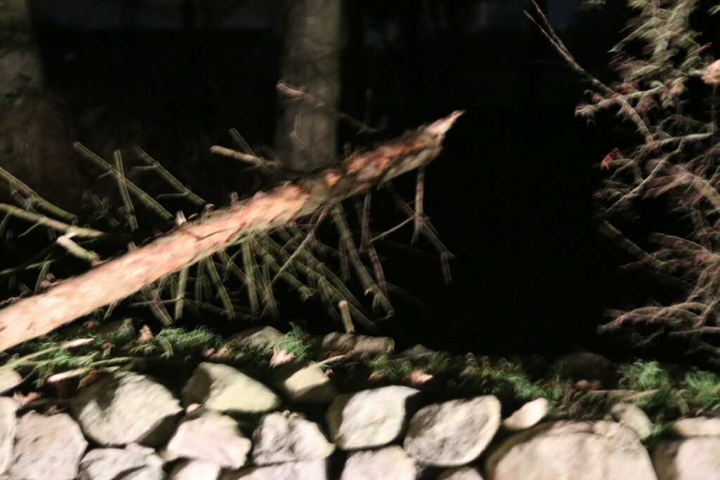 “Blæsten begynder at give flere væltede træer i den vestlige del af politikredsen, fra Ringkøbing i syd til Thisted i nord og ind i landet på højde med Nr. Snede og Karup. Kør forsigtigt”