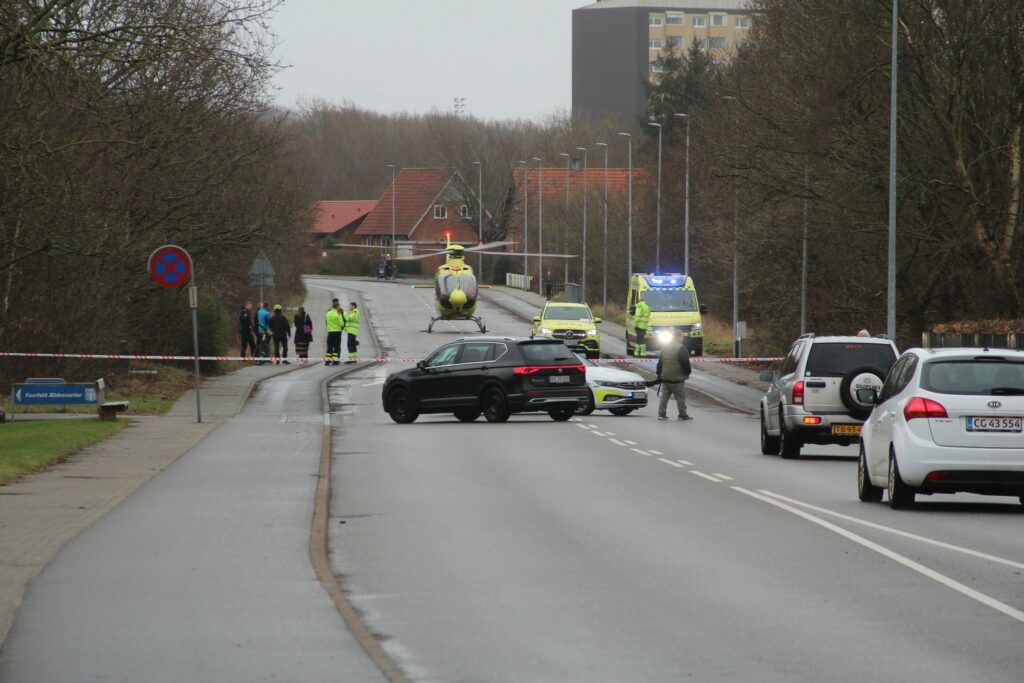 ‘Vis hensyn, hold afstand og find alternativ rute,’ lyder det fra Syd- og Sønderjyllands Politi, der advarer folk i området om, at helikopteren snart vil lande for at tage sig af patienten.