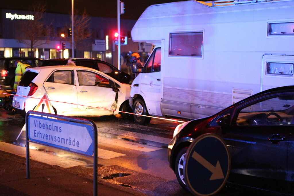 Føreren af den tredje bil er umiddelbart ikke kommet til skade ved uheldet.