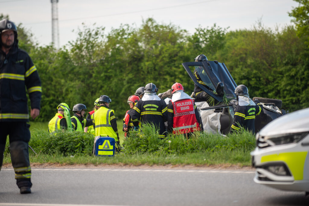 – En bil er væltet rundt på taget i forbindelse med et solouheld, og i den forbindelse har en person været fastklemt, siger Nikolaj Hølmkjær, som er vagtchef ved Syd- og Sønderjyllands Politi.