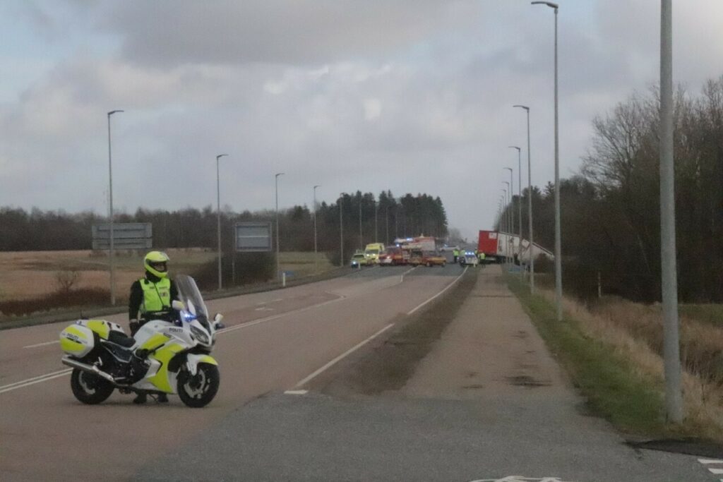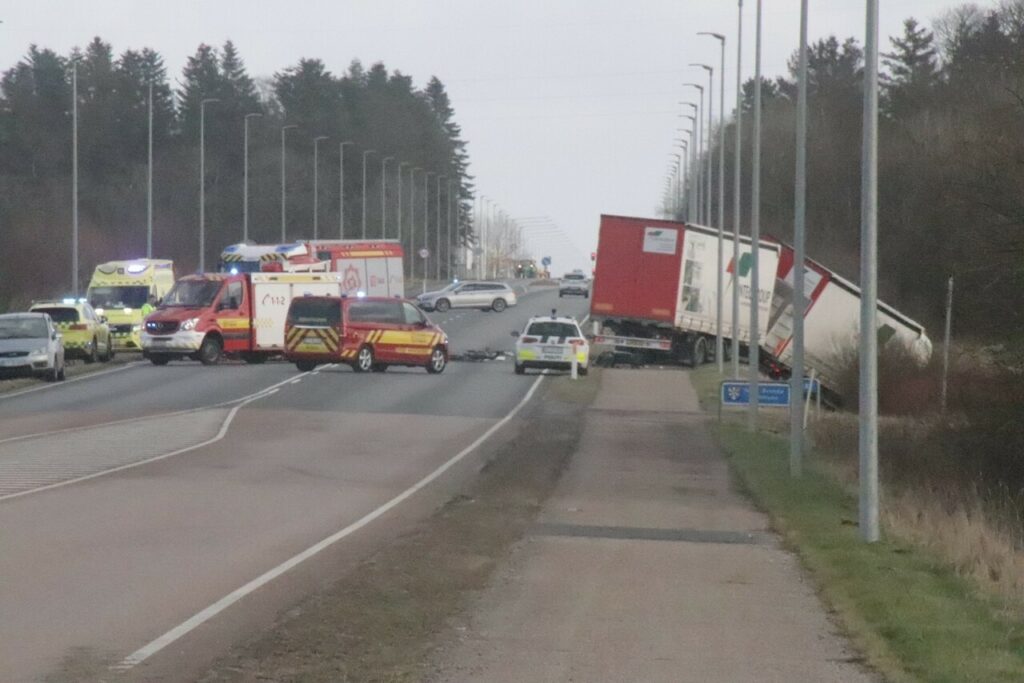 “Det er en lastbil og en personbil, der er kørt frontalt sammen. Vores umiddelbare undersøgelser viser, at personbilen formentligt har foretaget en U-vending og på den måde er endt foran lastbilen,” oplyser vagtchefen fra Midt- og Vestjyllands Politi, Anders Boie Hansen.