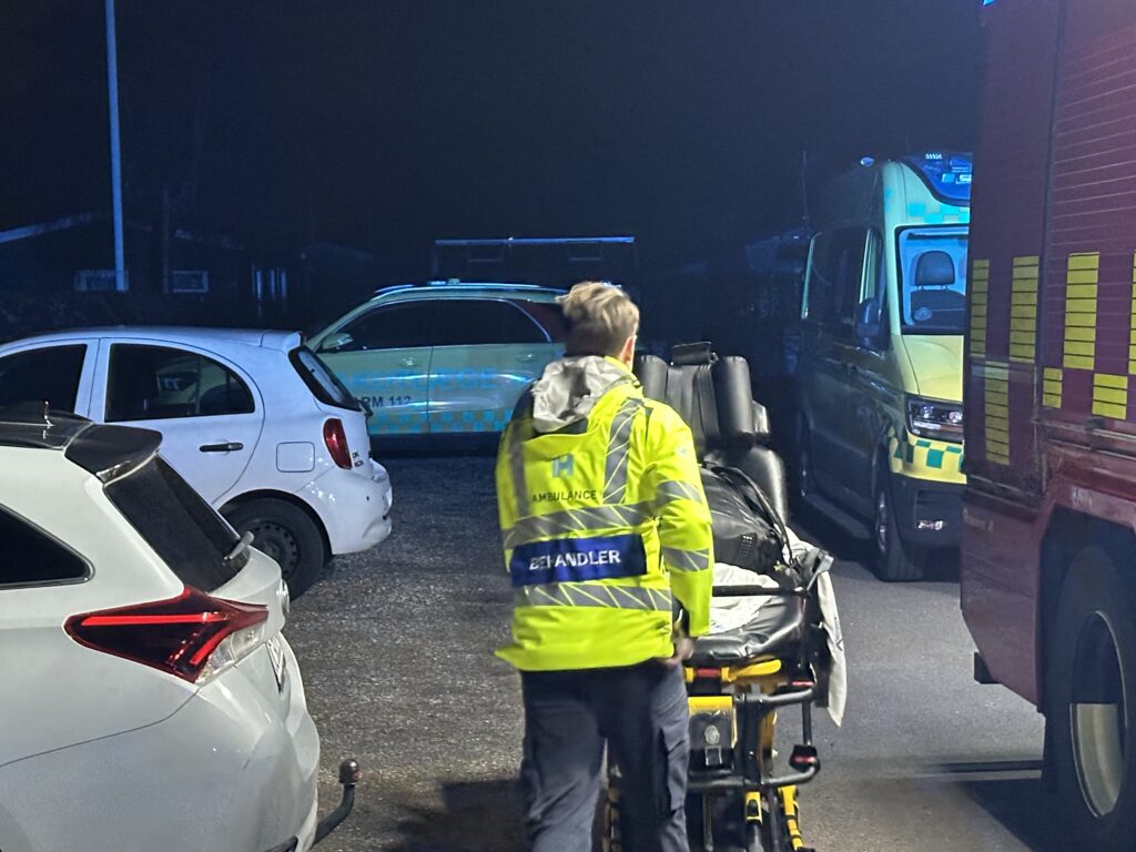 Kort efter er personen kørt med ambulancen, men der er ikke melding om, at nogen skulle være kommet alvorligt til skade.