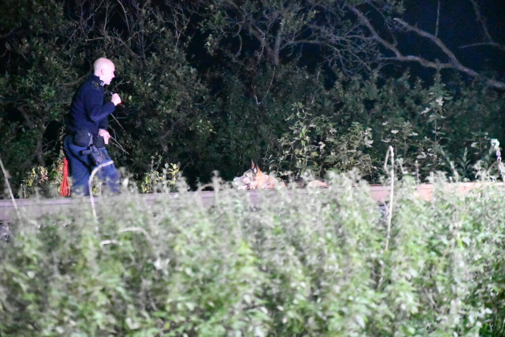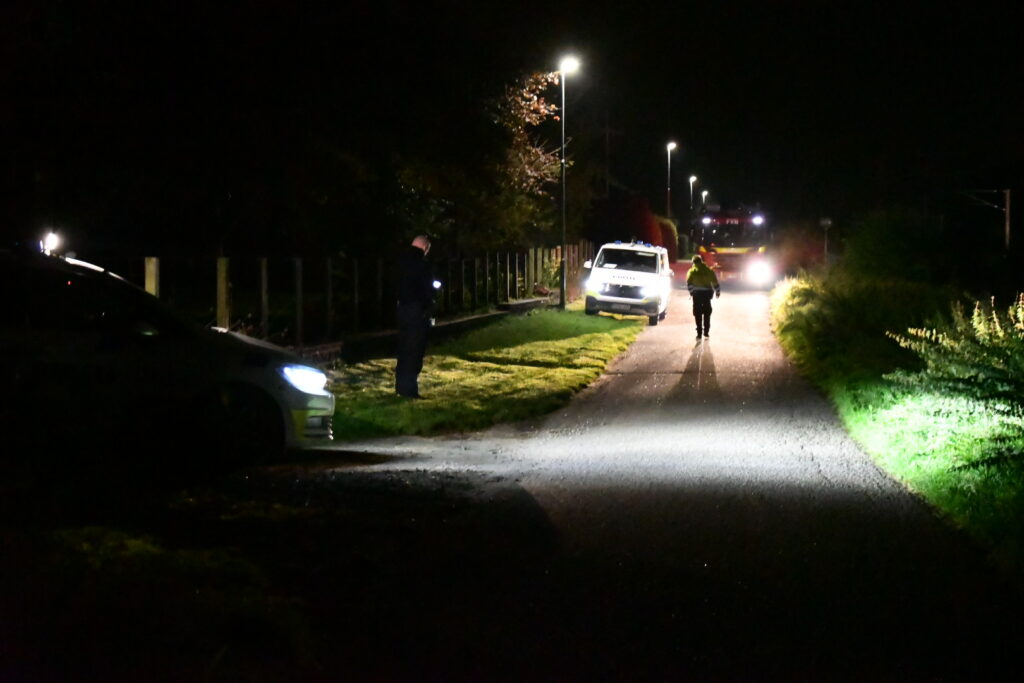 Politi og redning er talstærkt til stede og der søges nu med hunde i området.