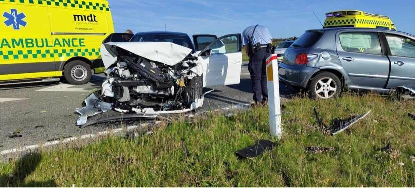 “Der er tale om to personbiler, der er stødt frontalt sammen. Der har været en person i hver bil – de er umiddelbart begge blevet kørt på hospitalet,” fortæller vagtchef ved Midt- og Vestjyllands Politi Carsten Henriksen til Presse-fotos.dk.