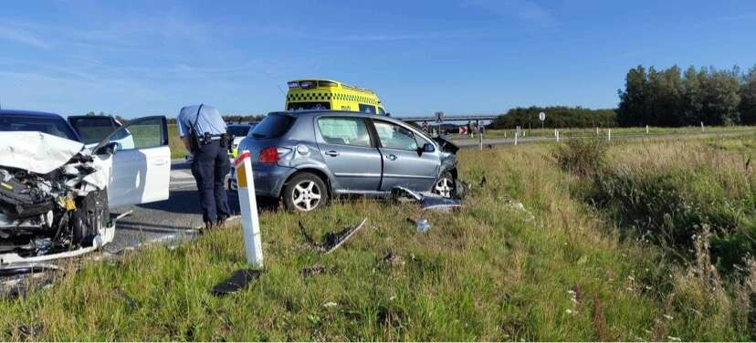 En akutlægebil, to ambulancer, politibiler og brandvæsen er onsdag kort før klokken 17 hastet ud til Brovej i Roslev, hvor der er sket et alvorligt sammenstød.