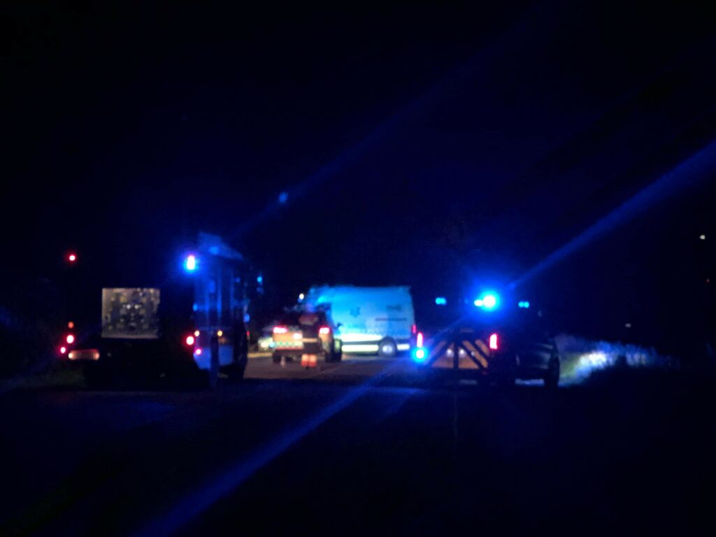 Velling Kirkeby vej er delvist spærret imens et større redningsarbejde forgår på stedet.