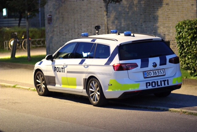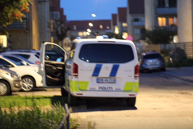 Politiet er søndag aften til stede i Postparken i Kastrup.