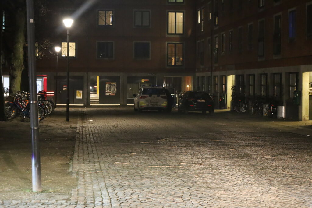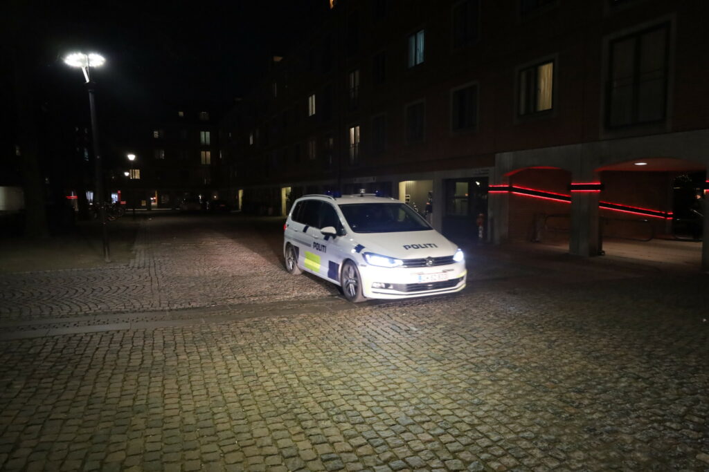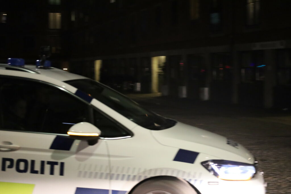 Fire patruljevogne er mandag aften til stede på Blågårds Plads i København.