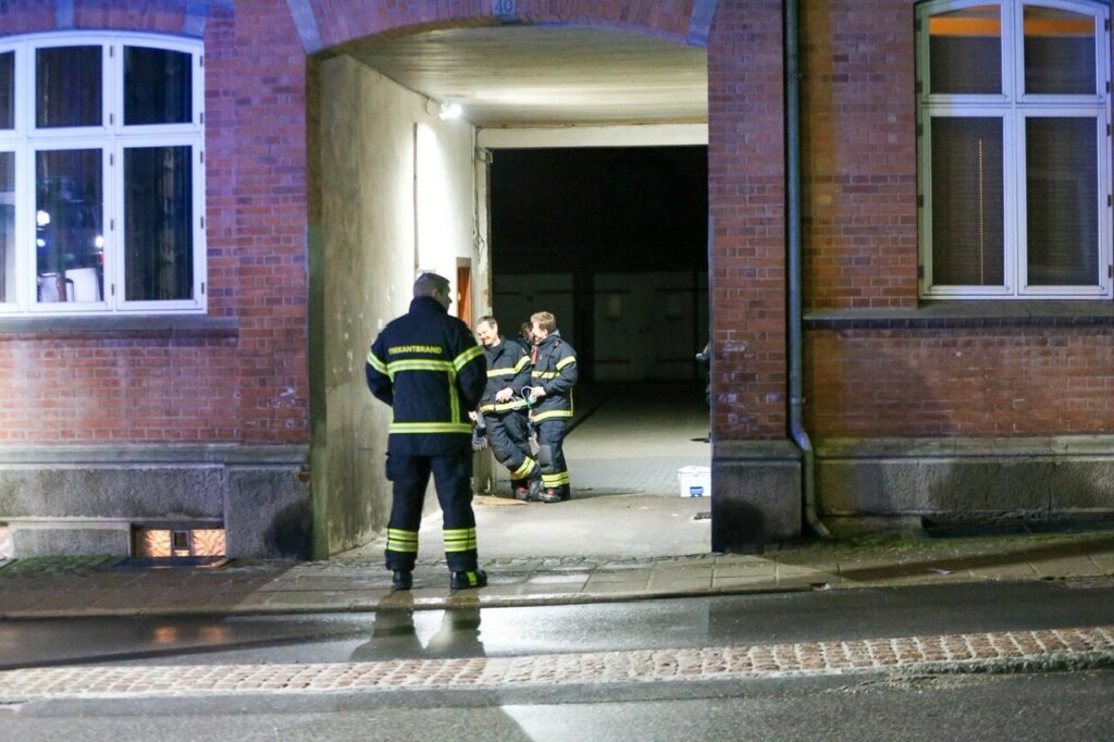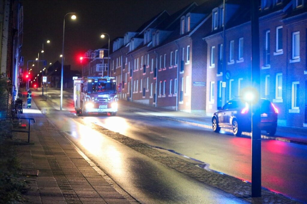Afspærringen tilkom efter en anmeldelse om brand i et rækkehus indløb alarmcentralen omkring kl 6 søndag morgen.