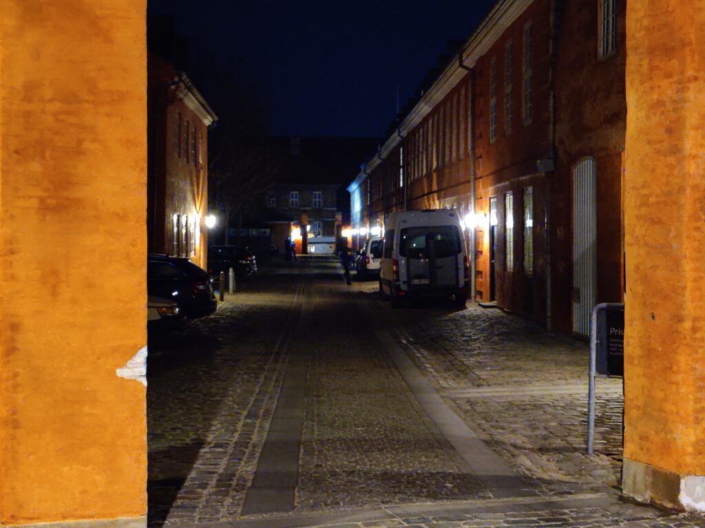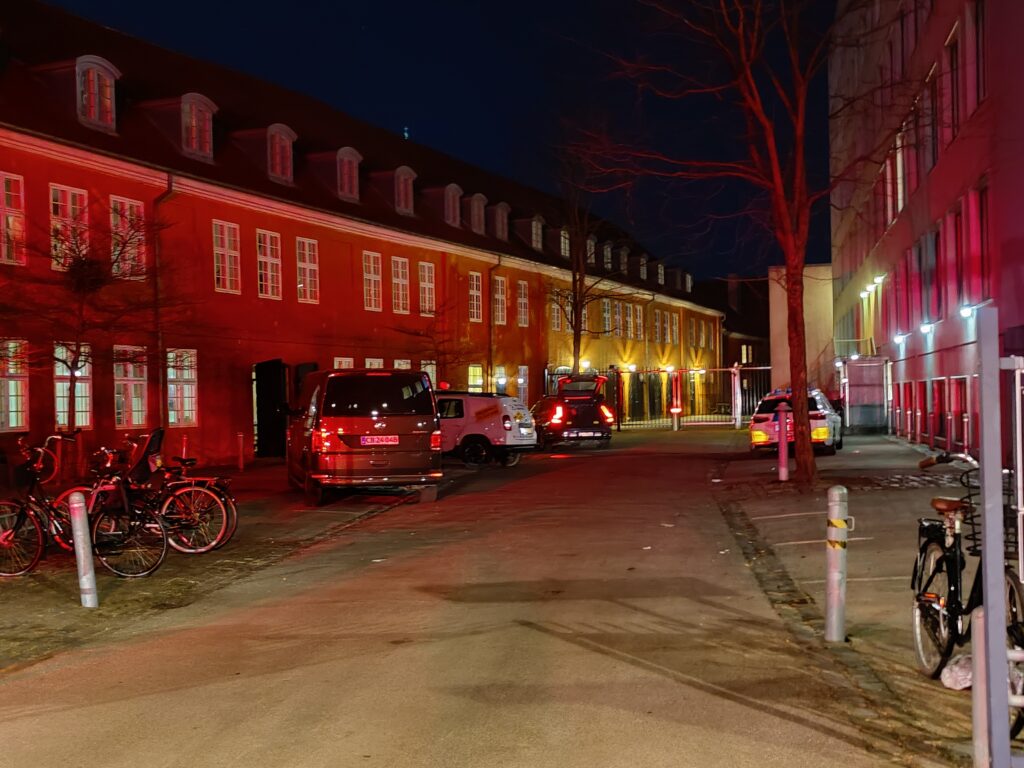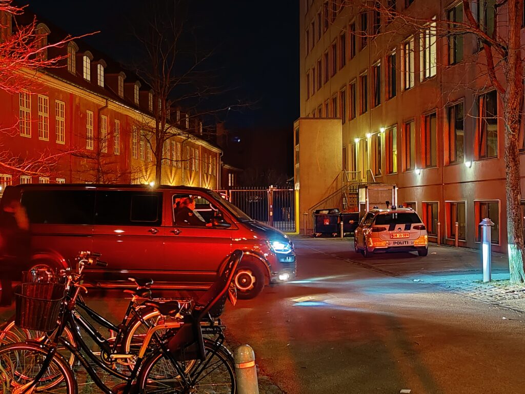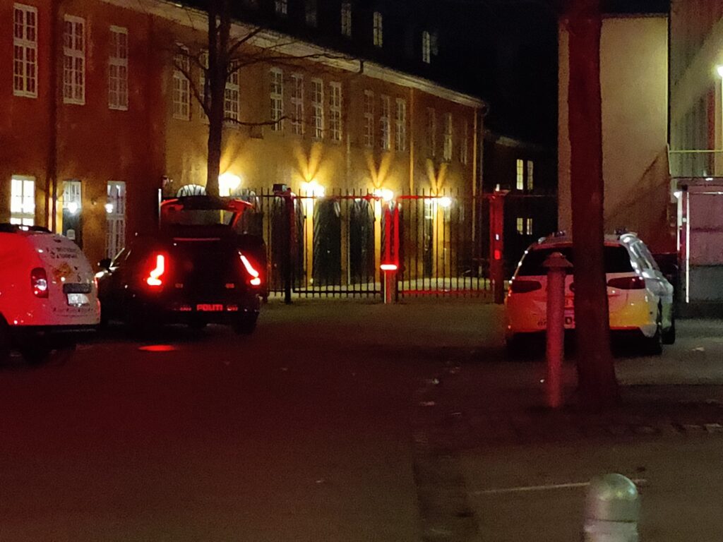 Politiet er med hund, til stede ved Børne og undervisningsministeriet i København.