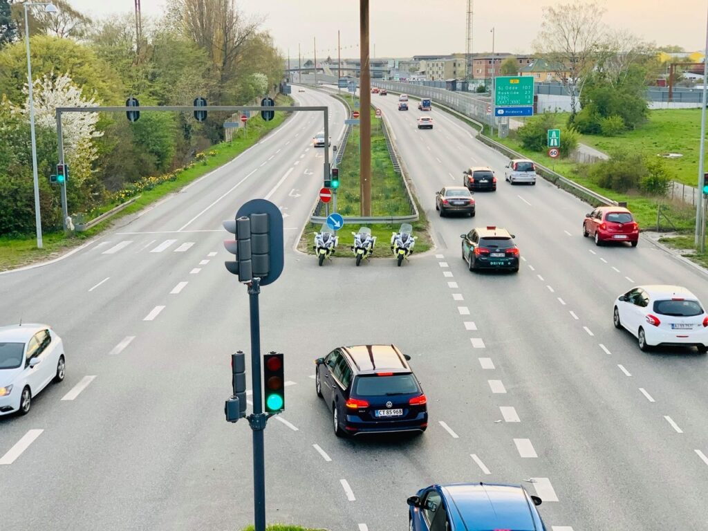 Politiets motorcykelbetjente afholdt tidlig lørdag aften fartkontrol ved Holbækmotorvejens afslutning i Folehaven.