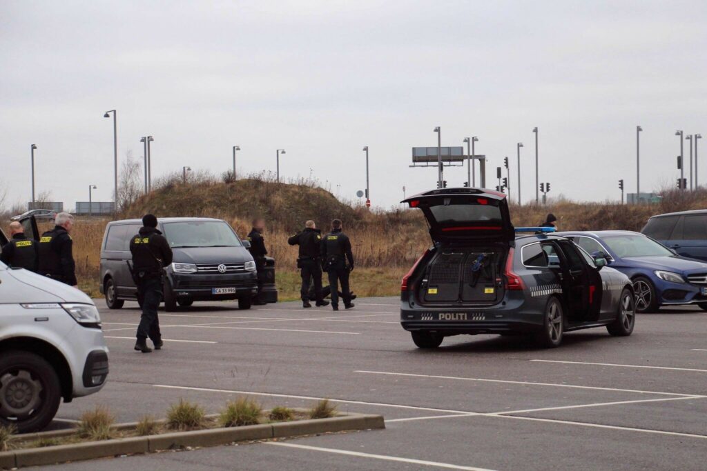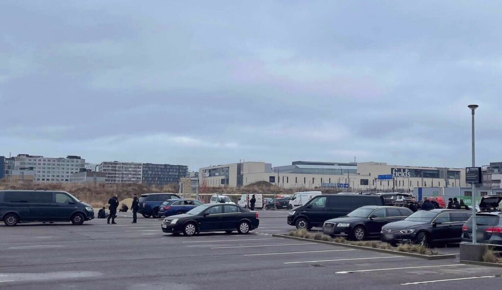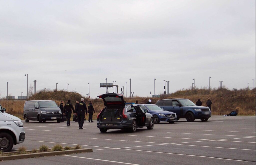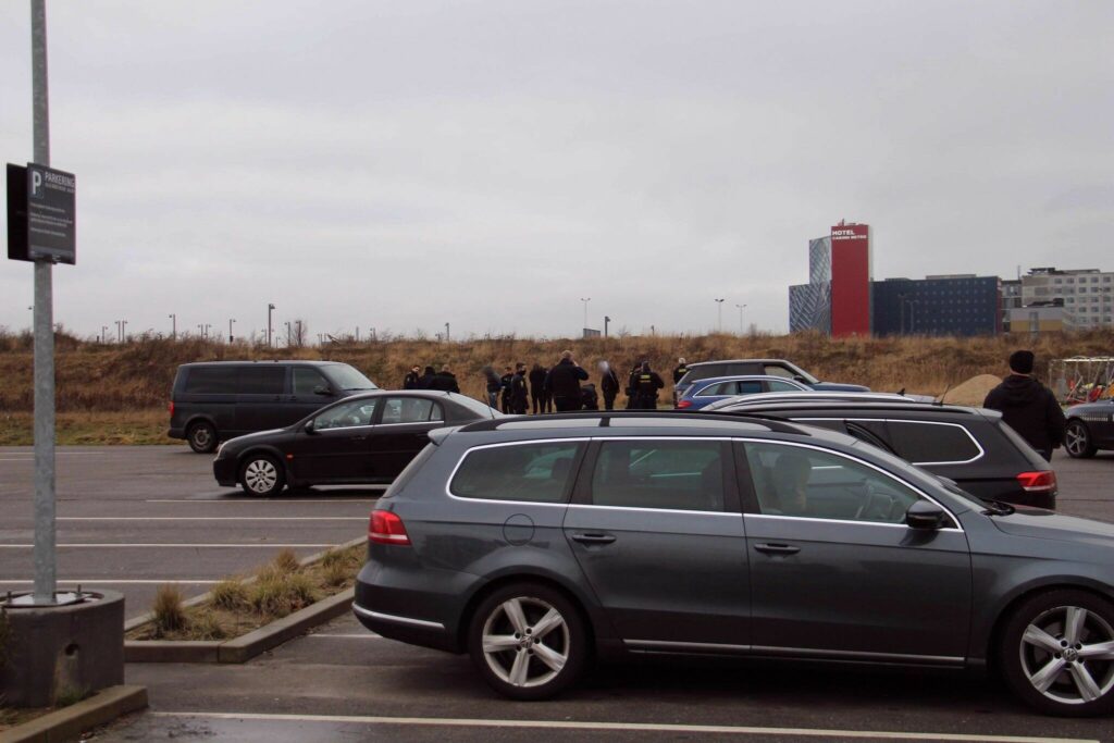 Politiet er massivt til stede på en parkeringsplads omkring Royal Arena i København.