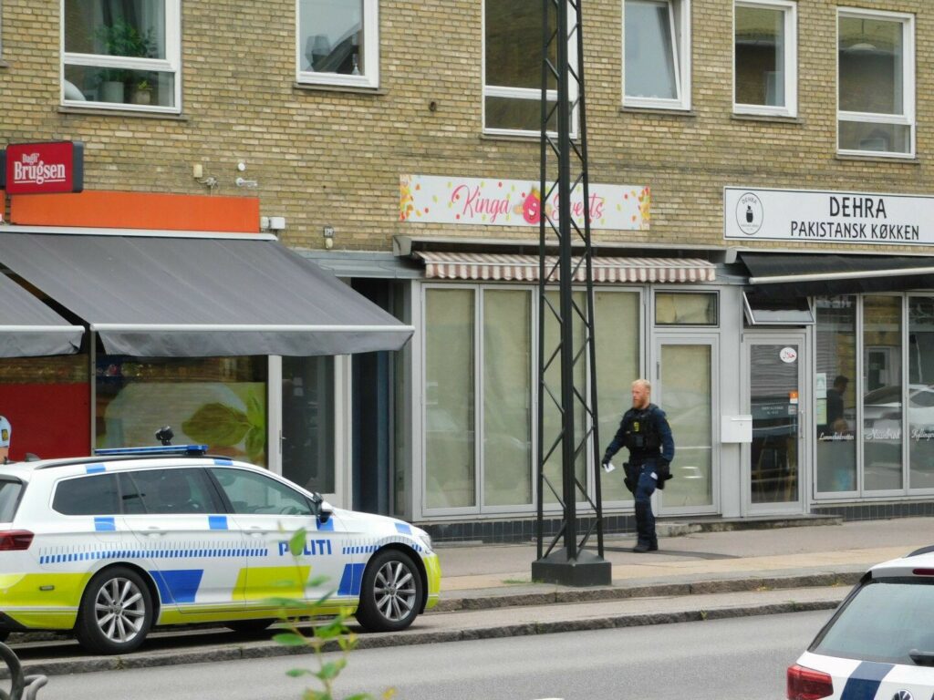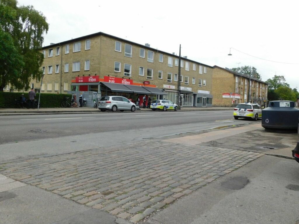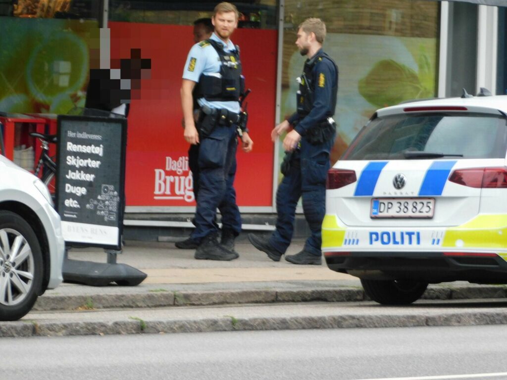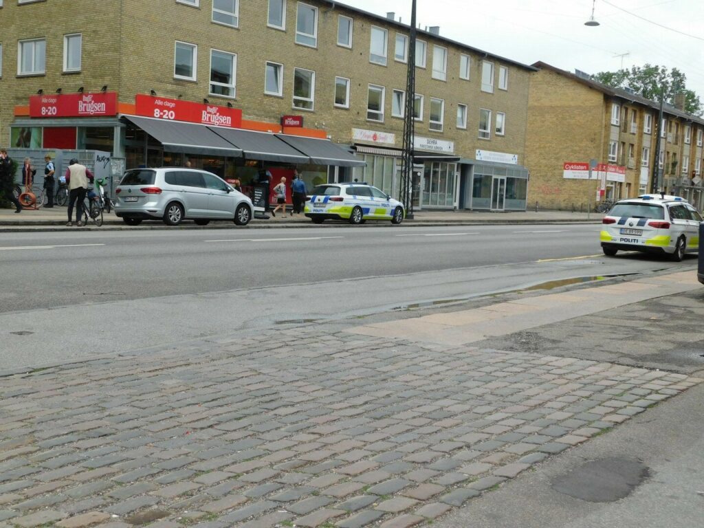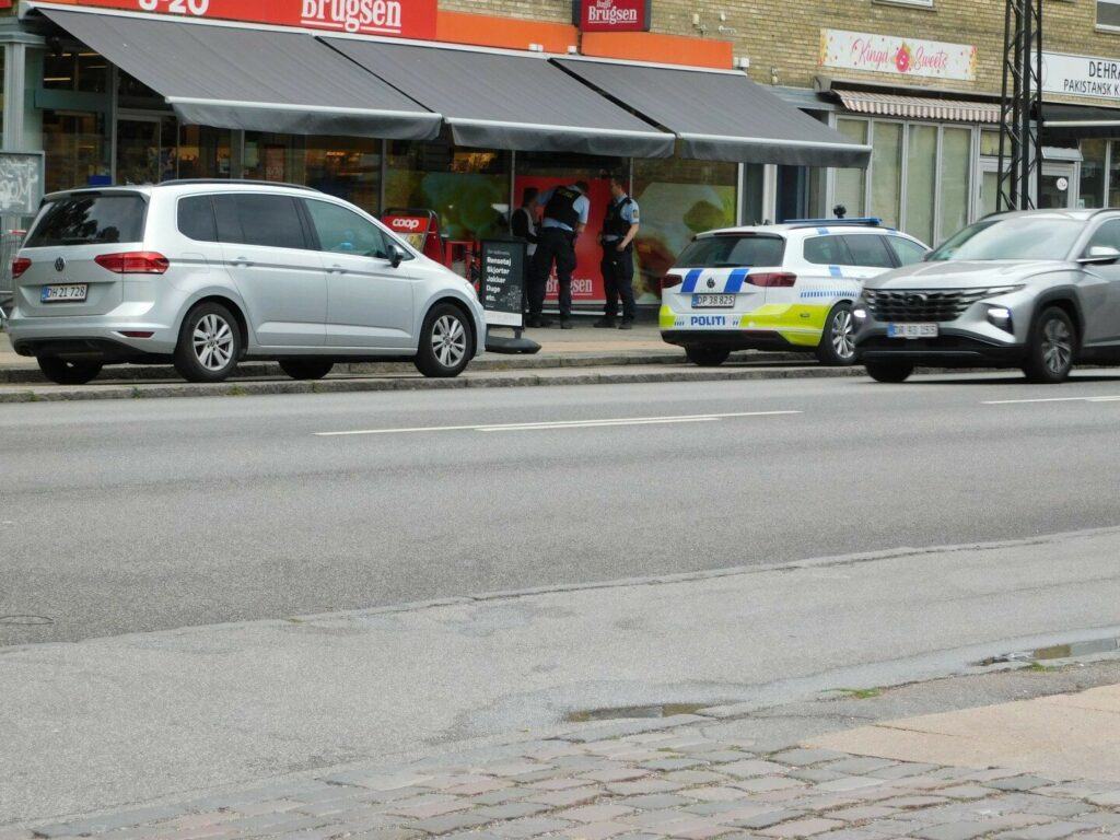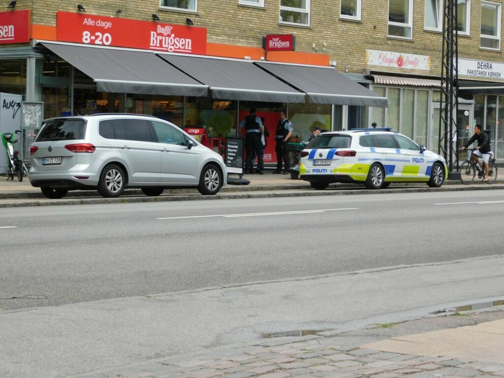 Lørdag formiddag er flere betjente ankommet til Vigerslevvej i Valby, hvor der har været et større skænderi i Daglig’ Brugsen.