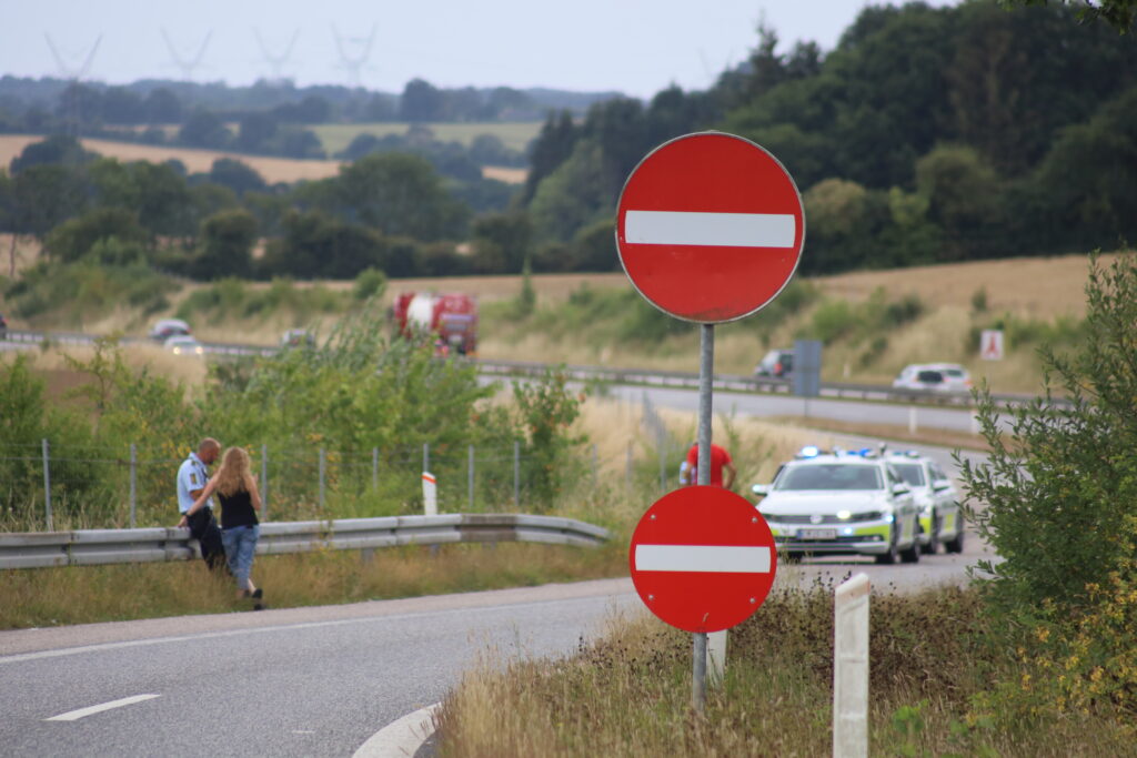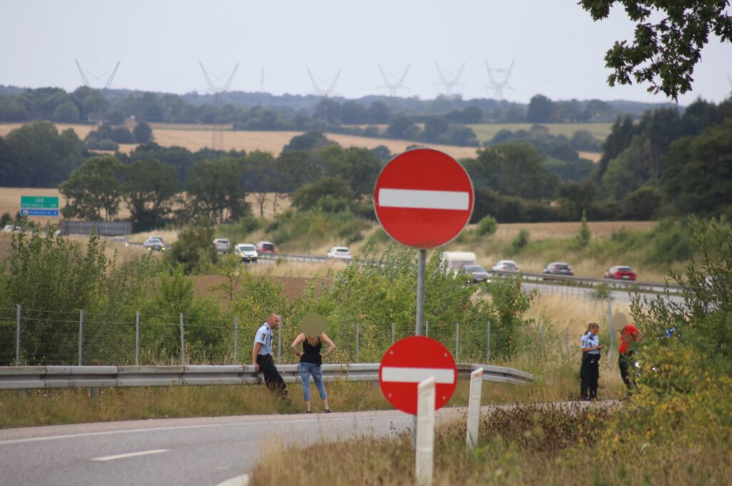 Politiet var søndag aften til stede med flere patruljer på E45 Sønderjyske Motorvej, fra Kolding mod Haderslev ved Christiansfeld.