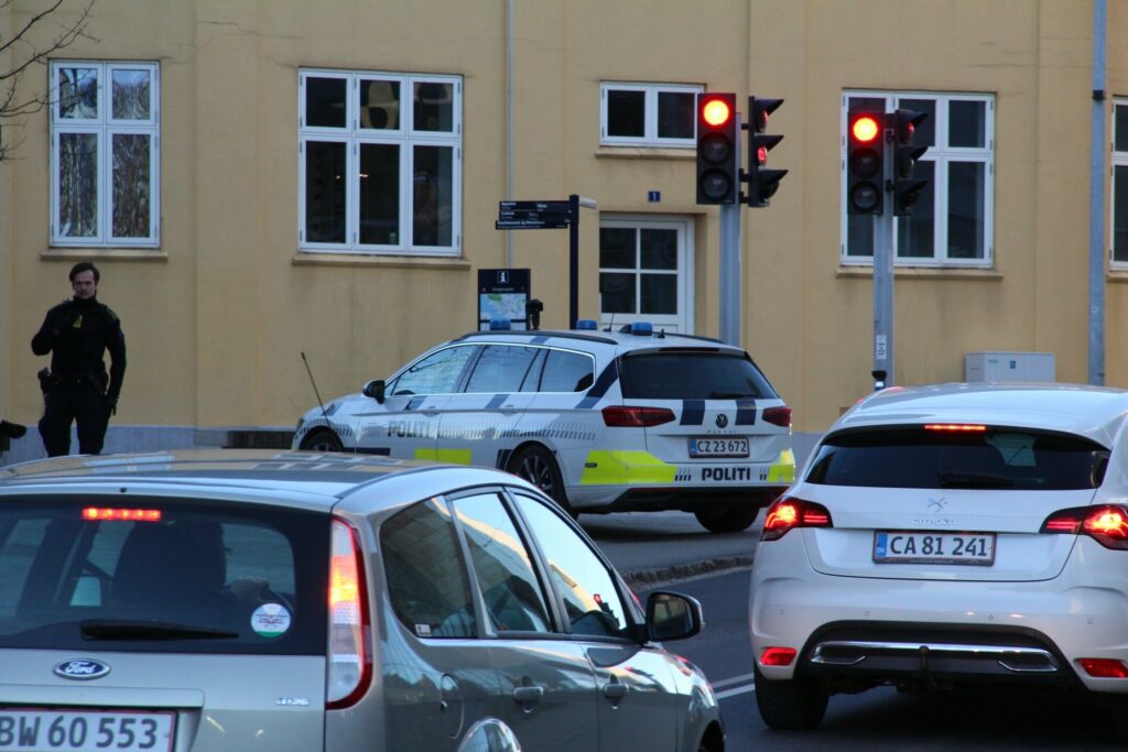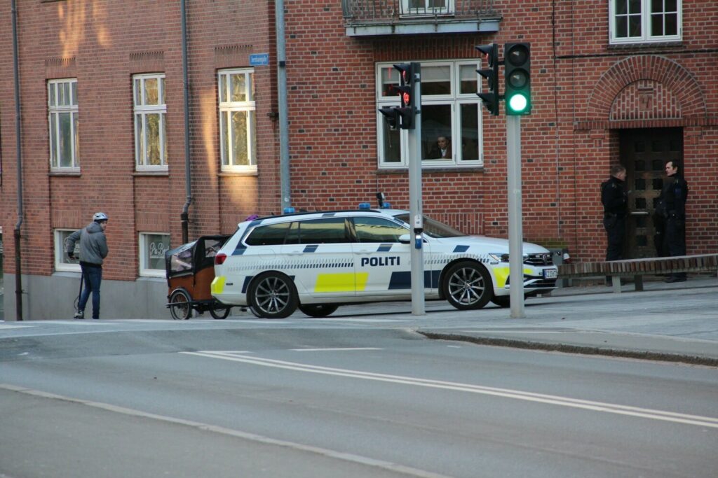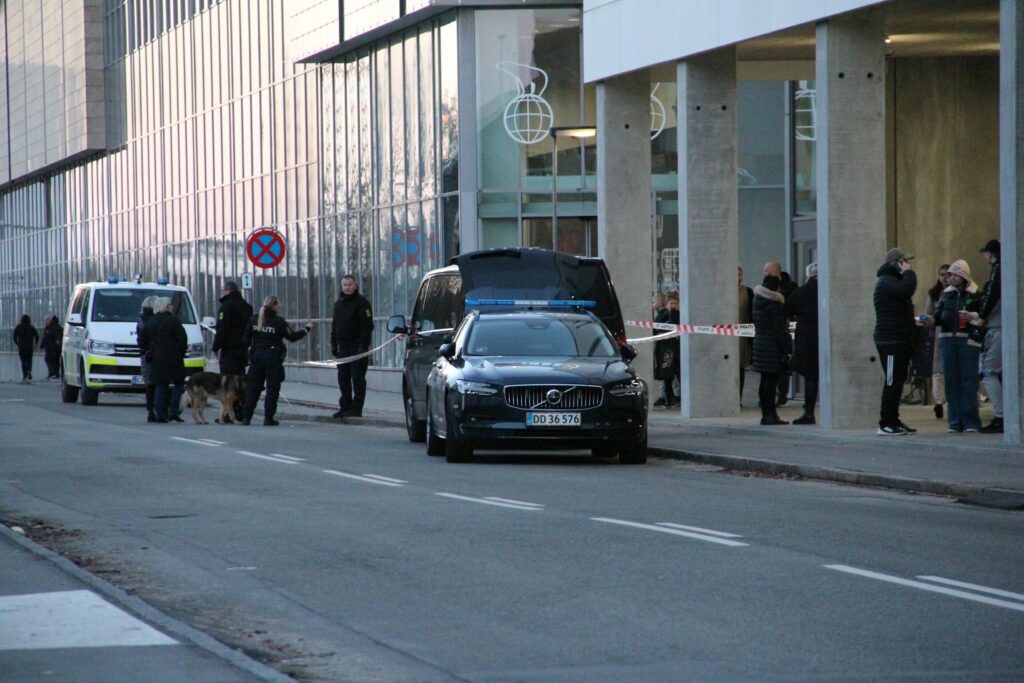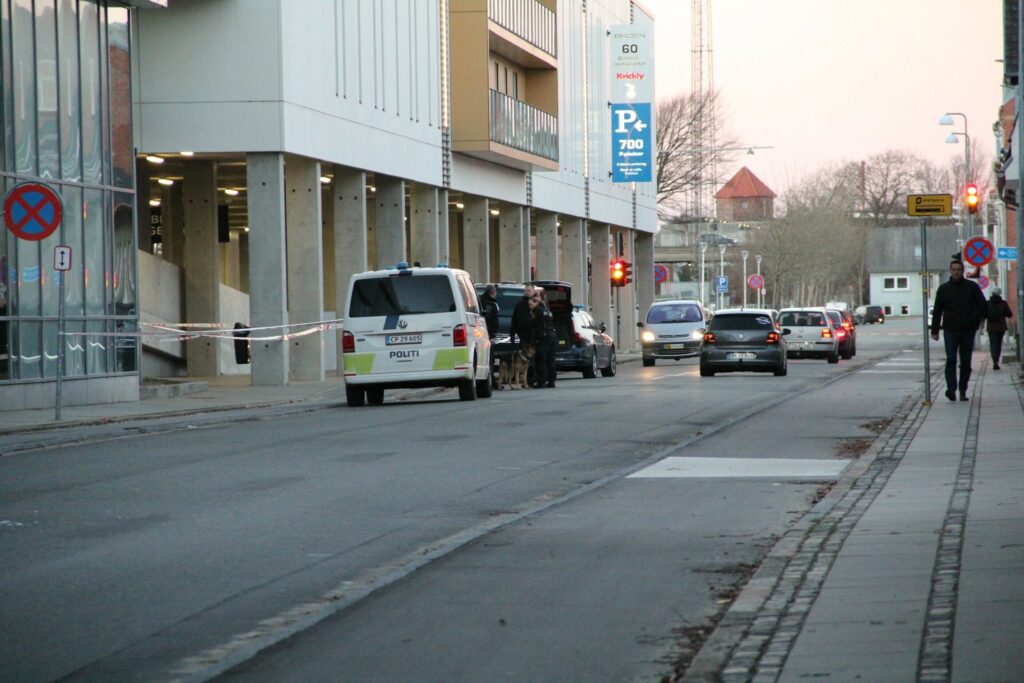 Politiet er søndag eftermiddag talstærkt til stede ved Broen shopping i Esbjerg.