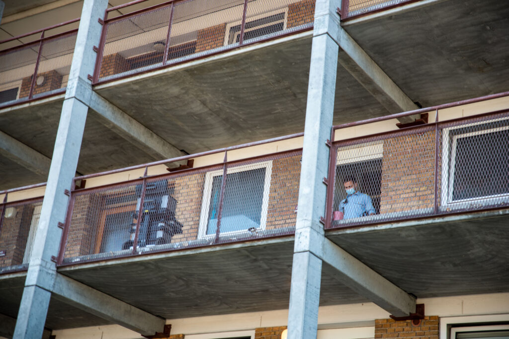 Politiet er torsdag morgen til stede ved en lejlighed på Alsgade i Sønderborg.