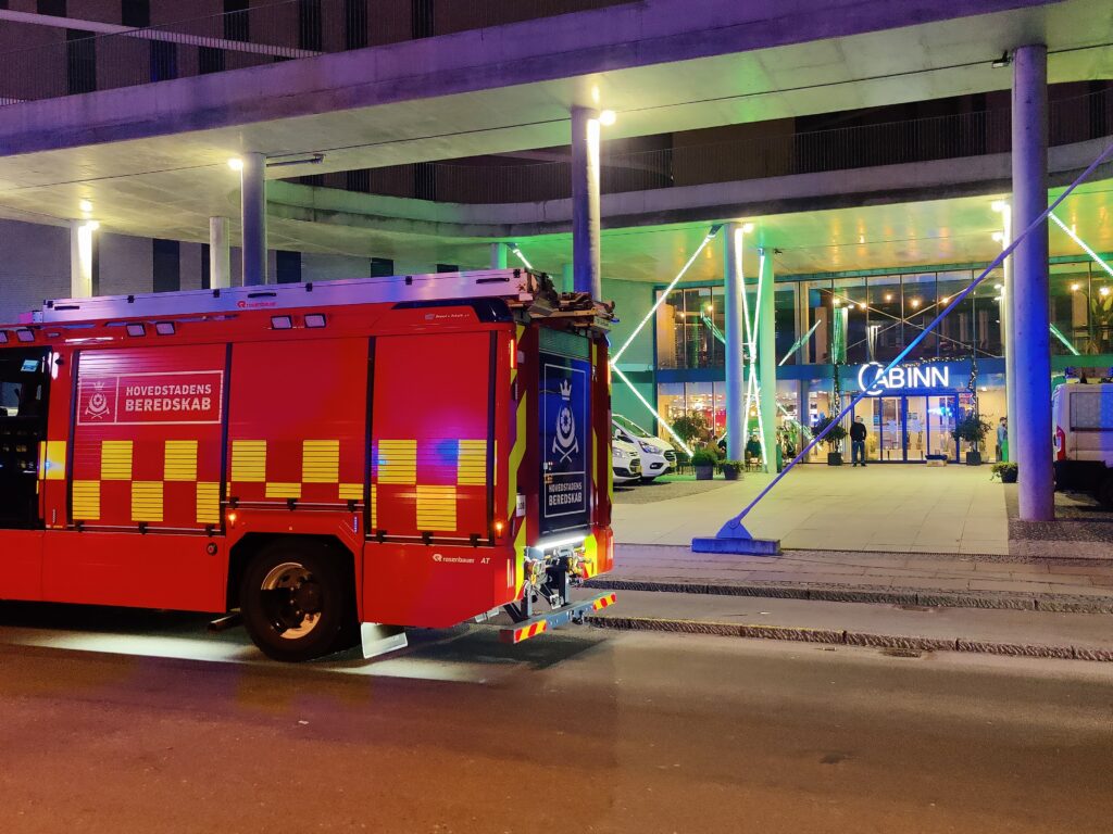 Hovedstadens Beredskab rykkede tirsdag aften ud til en brandalarm på et hotel på Ari Magnussons Gade i København.