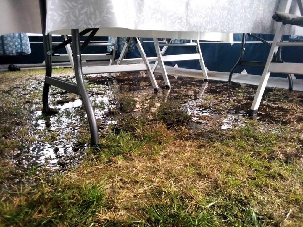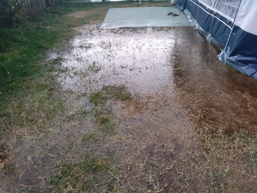 Værst er det søndag eftermiddag gået ud over Jylland, hvor bl.a. kloakdæksler bliver presset op af asfalten, motorveje oversvømmes og campingpladser bades i mudder.