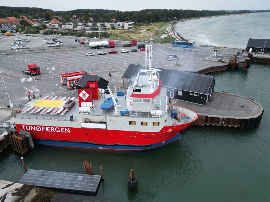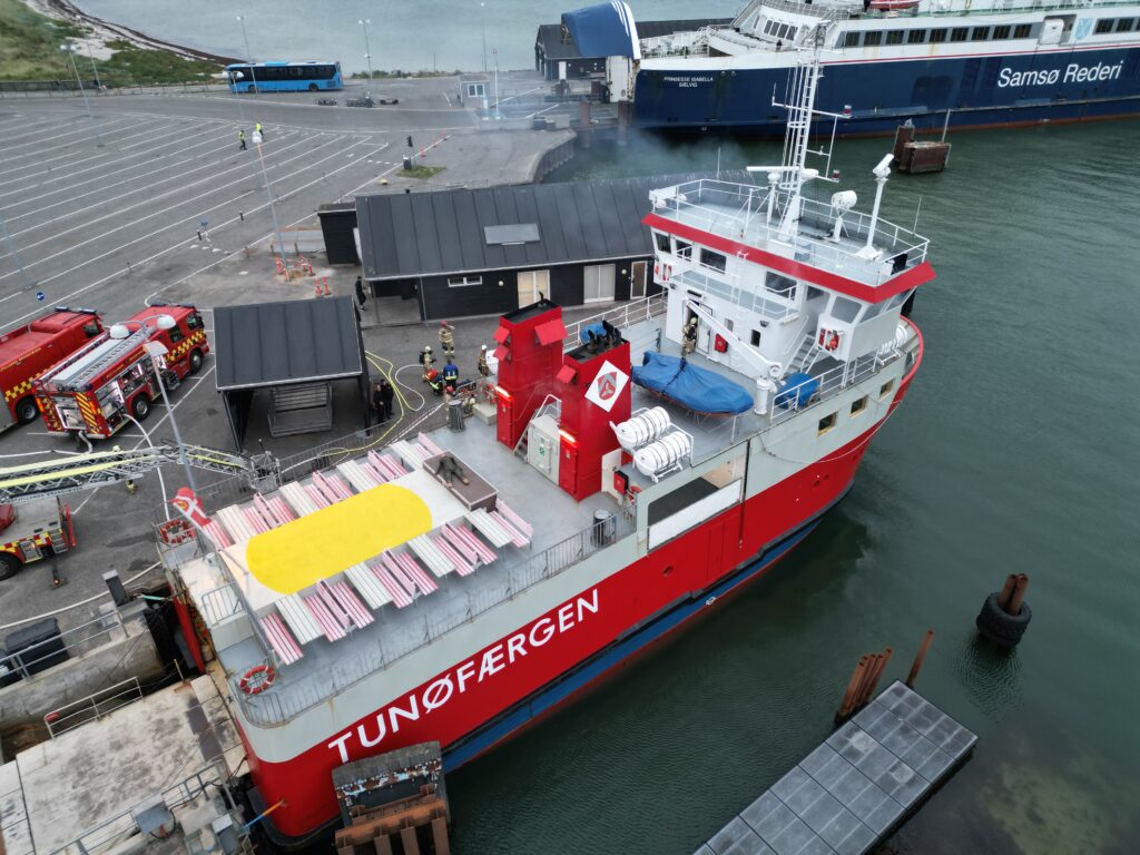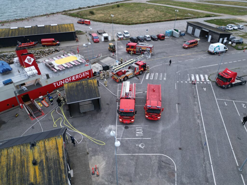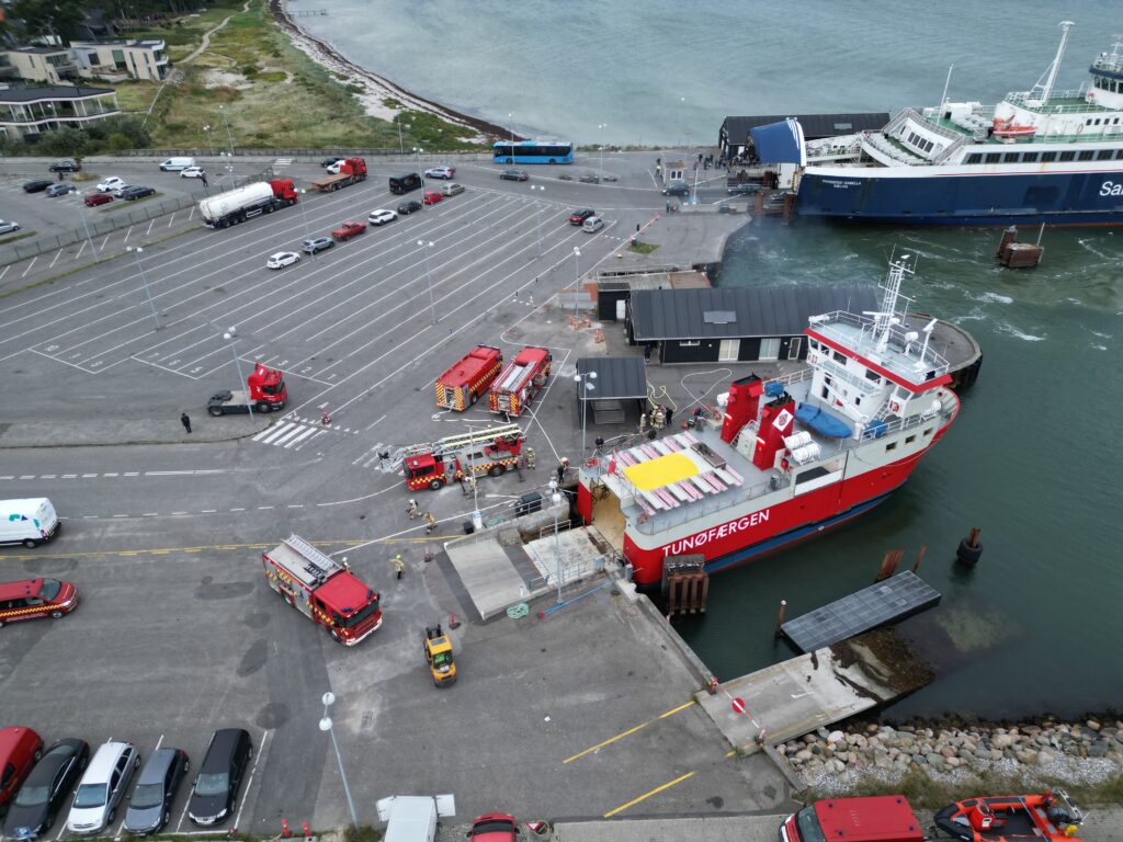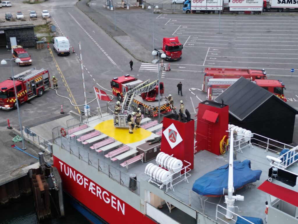 Mandag aften kl 19.00 kunne man på Hou havn se en større mængde brandfolk, som var i gang på Tunø færgen.