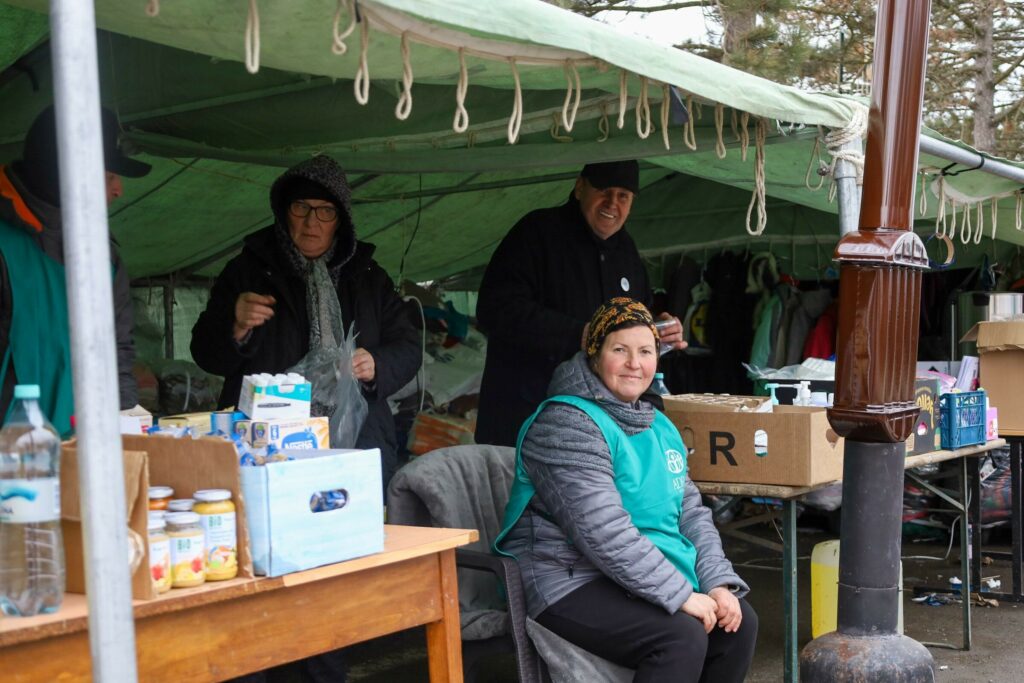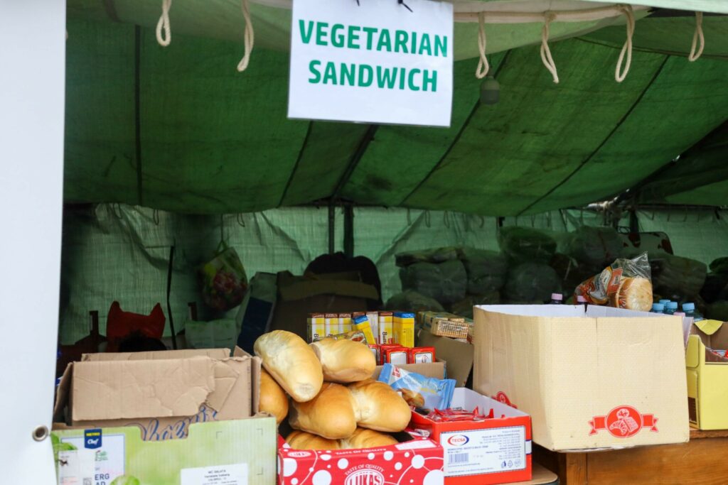 I nærheden står store grønne telte med madbader til de ukrainske flygtninge.