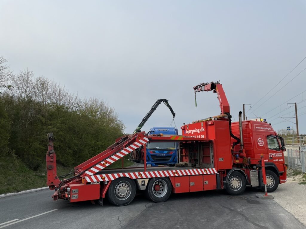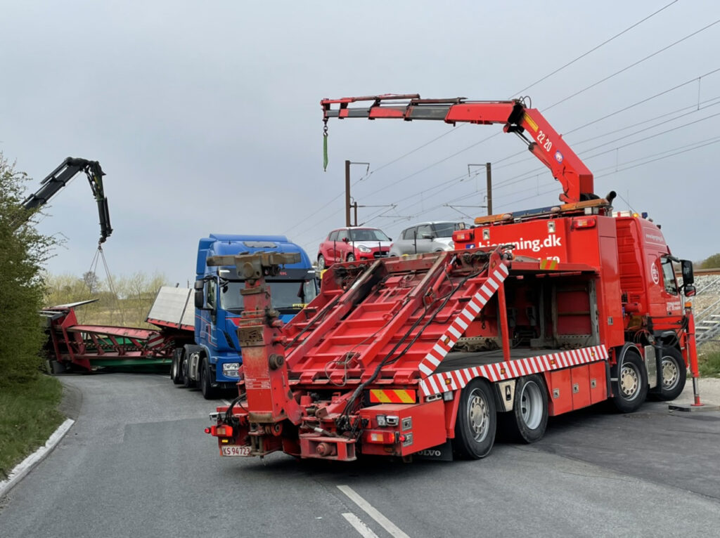 Der pågår et større oprydningsarbejde ved Karlslunde rasteplads, hvor en uheldig lastbilchauffør natten til torsdag væltede med sit vogntog.