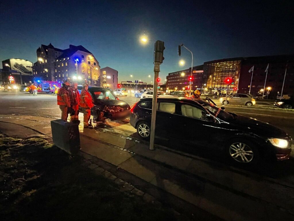 To biler er kørt sammen i krydset mellem Teglholmsgade og Vasbygade i København.