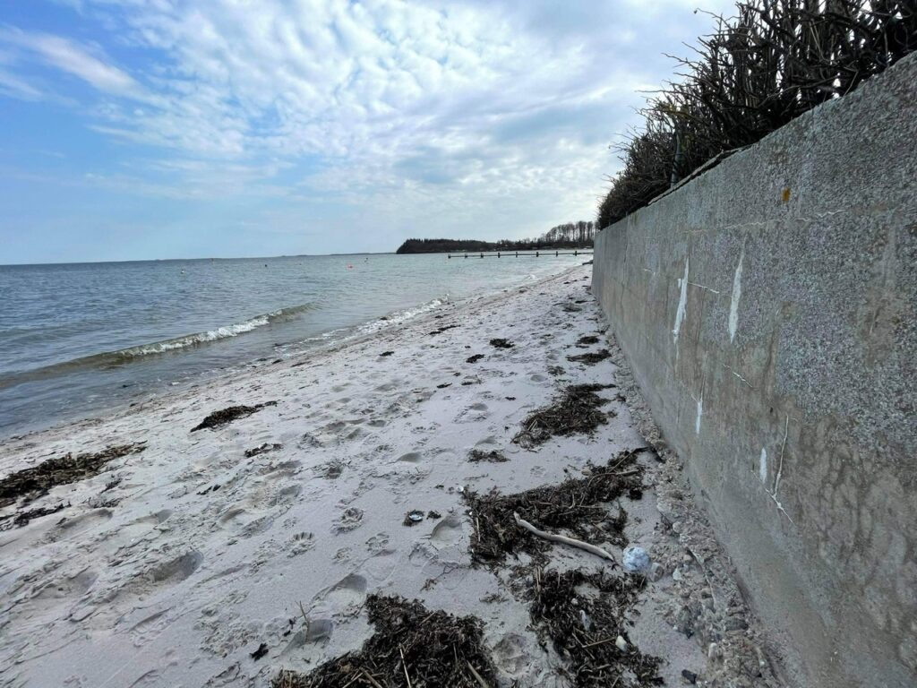 Et smukt lille sted med sandstrand og havudsigt, flot omkranset af grønne områder.